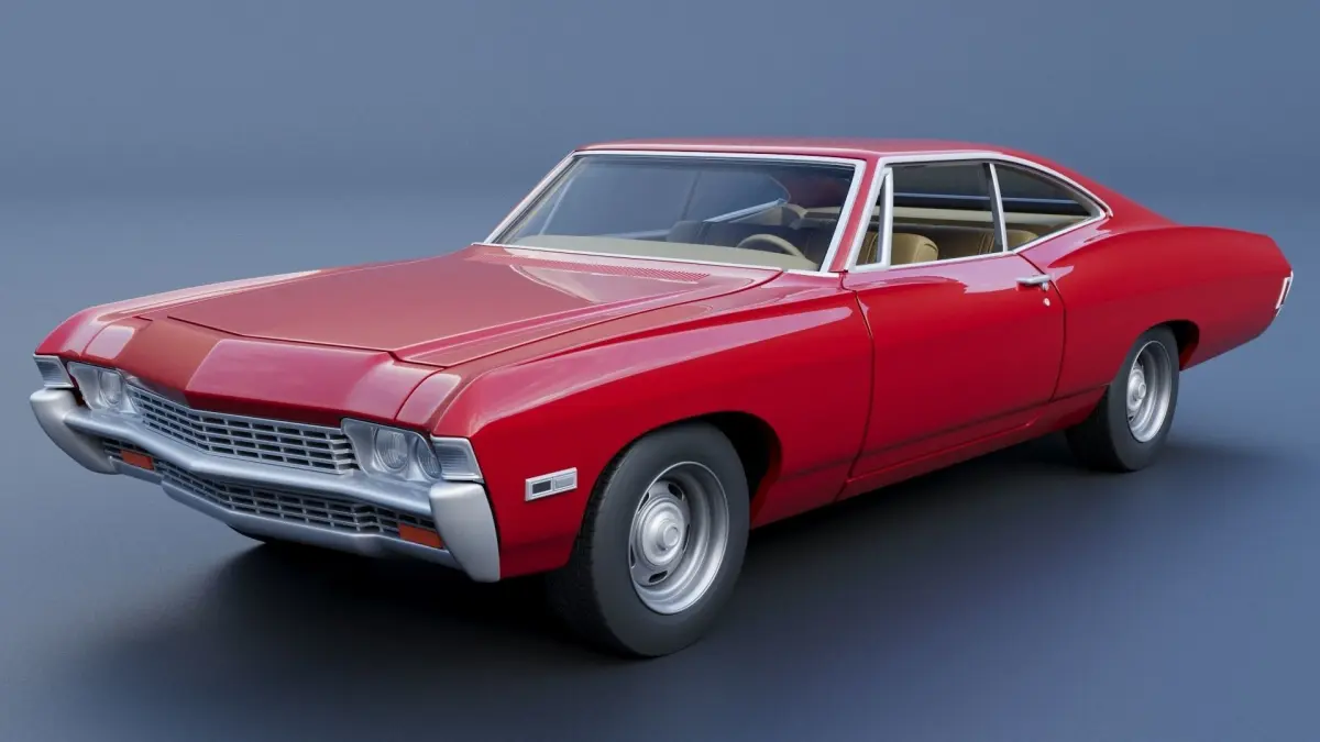 The model includes •Body •Body without hood •Hood •Body divided into 3 parts •Grille •Engine •Interior •Chassis •Wheels •Tires •Windows and glass for headlights and taillights