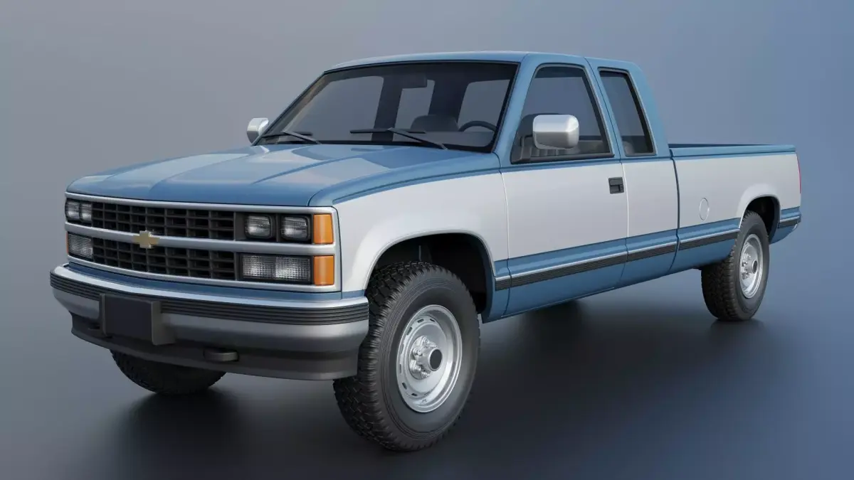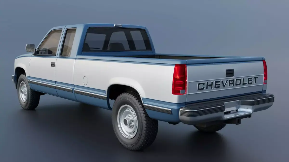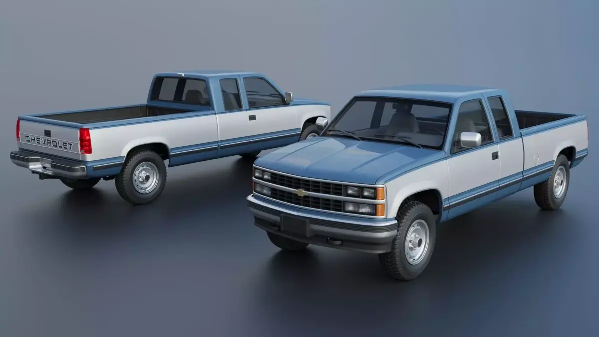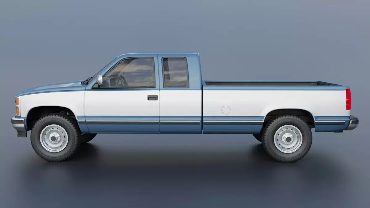 The model includes •Cab •Cab without hood •Hood •Grille •Bed •Cab divided into 5 parts •Bed divided into 4 parts •Bumpers •Interior •Chassis •Engine •Wheels •Tires •Windows and glass for headlights and taillights