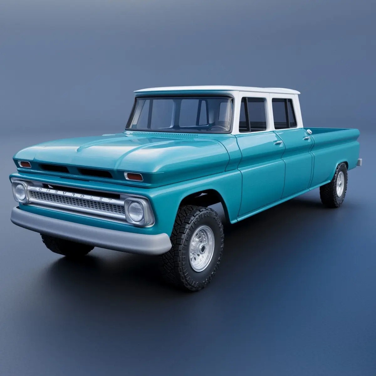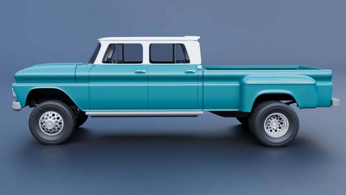 The model includes •Cab •Cab without hood •Hood •Grille •Cab divided into 3 parts •Box divided into 4 parts •Bumpers •Interior •Chassis •Engine •Wheels •Tires •Windows and glass for headlights and taillights