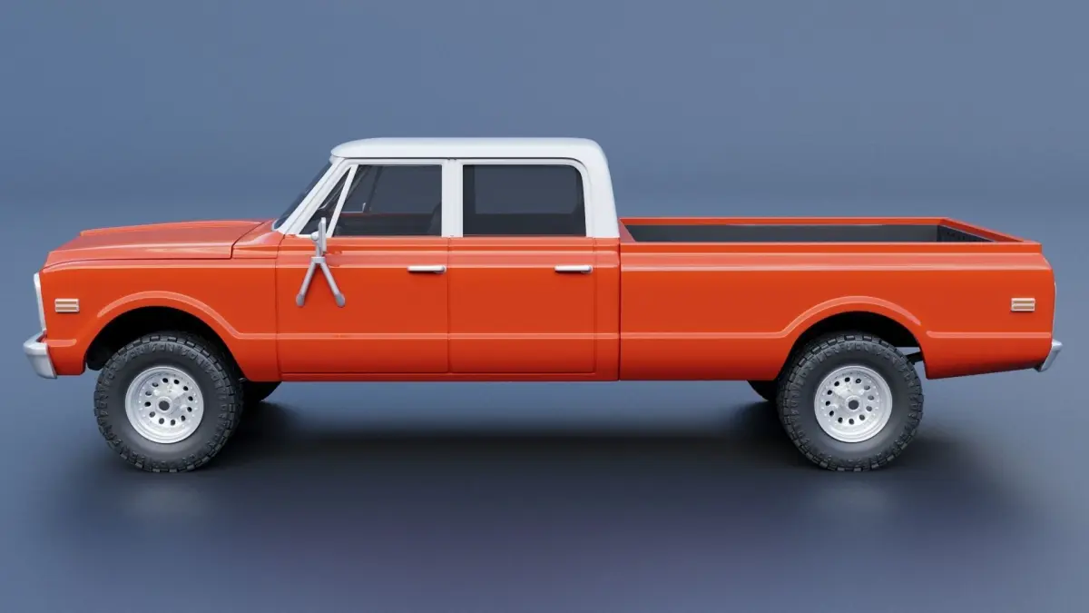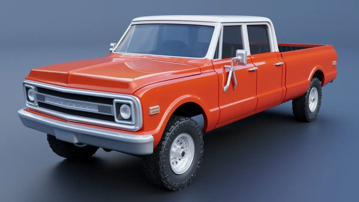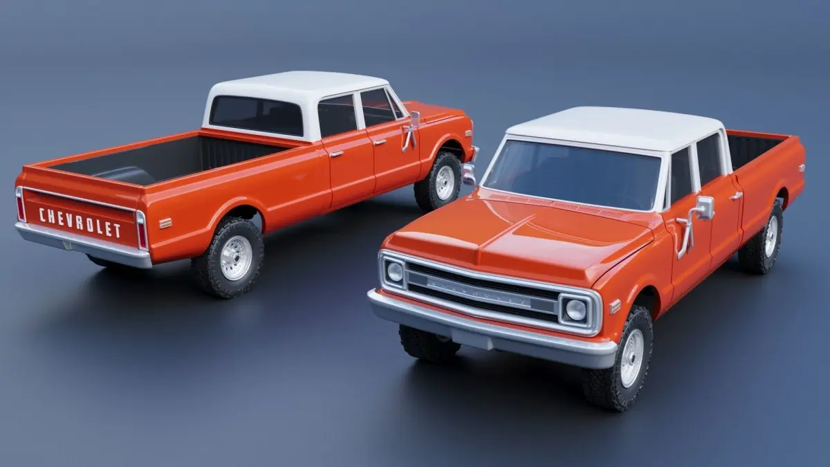 The model includes •Cab •Cab without hood •Hood •Grille •Cab divided into 4 parts •Box divided into 4 parts •Bumpers •Interior •Chassis •Engine •Wheels •Tires •Windows and glass for headlights and taillights