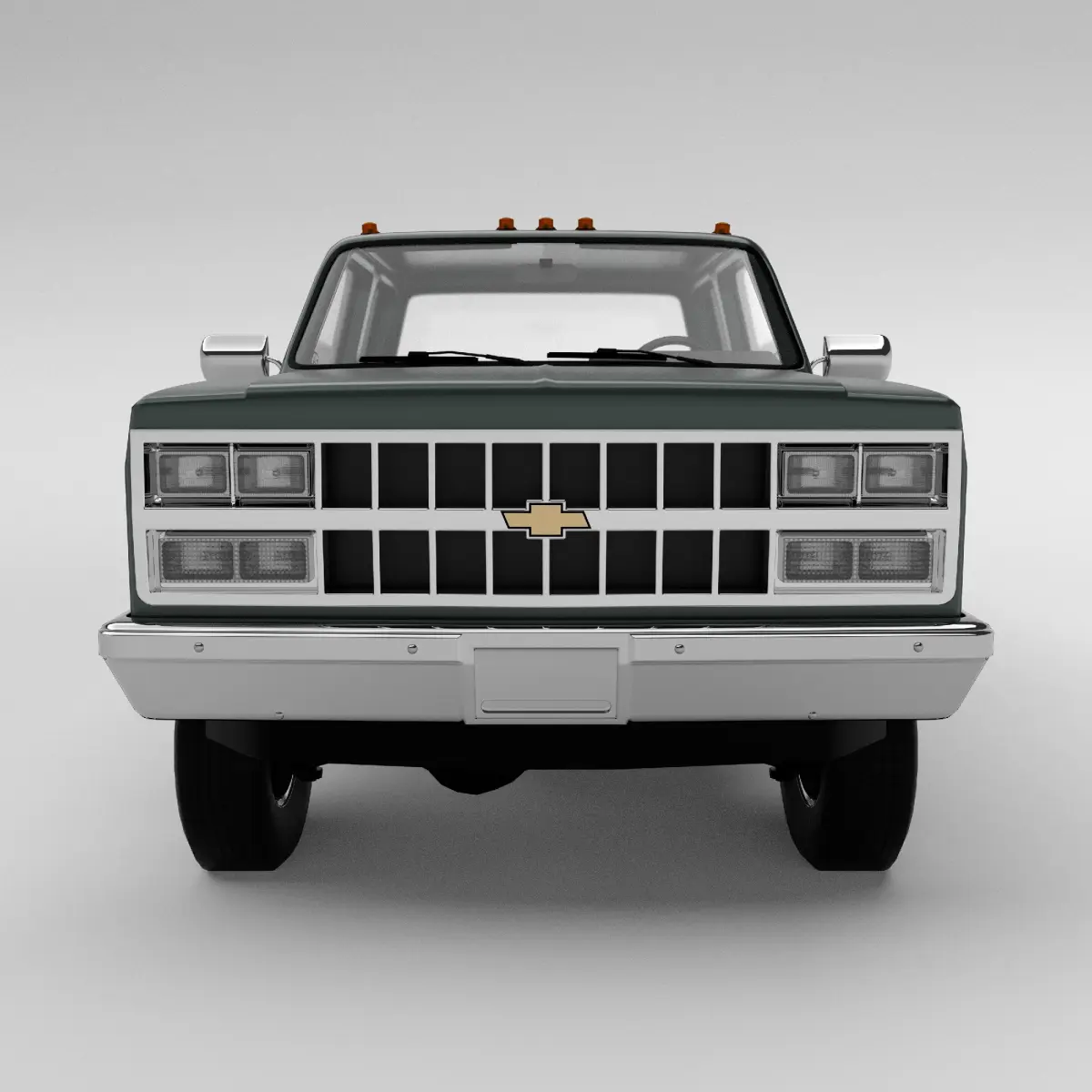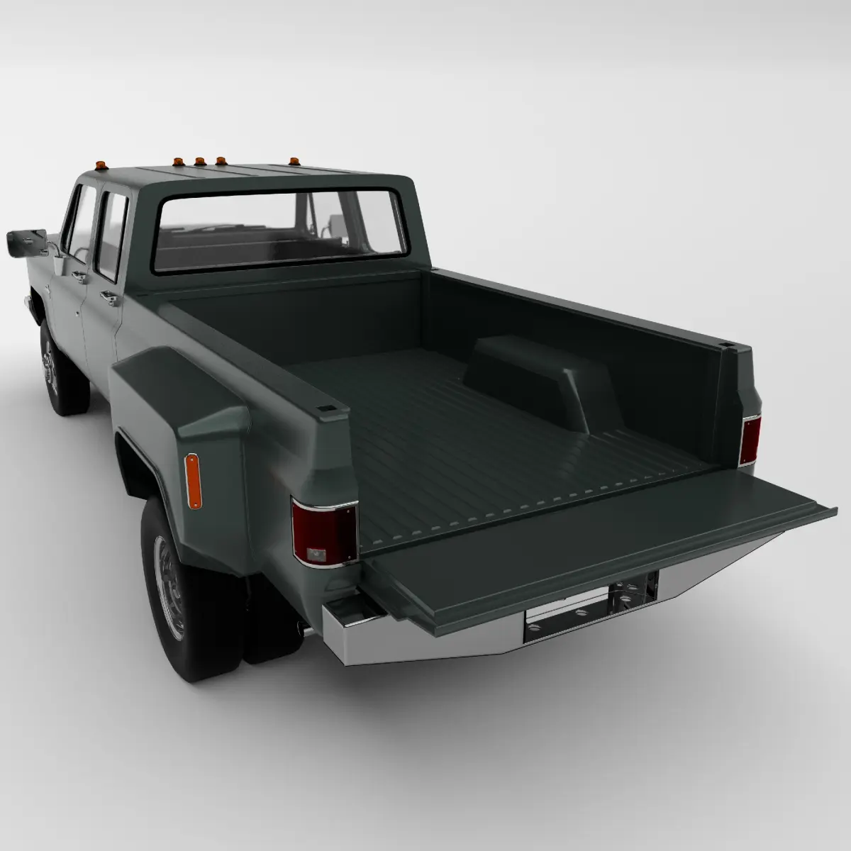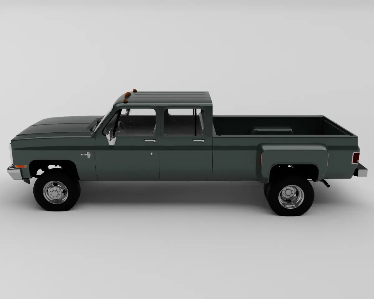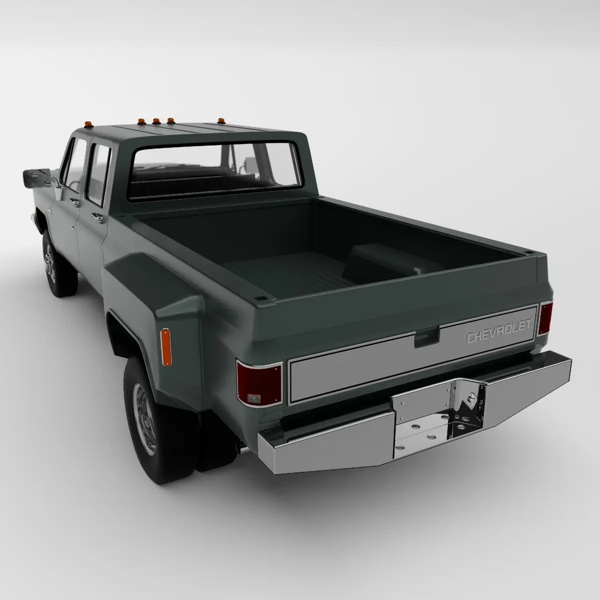 Chevrolet K30 Crew Cab Dually 1989 originally created in Blender version 2.79b. Previews were rendered with Blender Cycles Render. Textures in .png (Specular, Roughness, Metallic, Normal, Diffuse). Textures size:Body: 4096 x 4096 Glass: 2048 x 2048 Wheel: 1024 x 1024 Formats: .blend, .fbx, .dae, .obj.