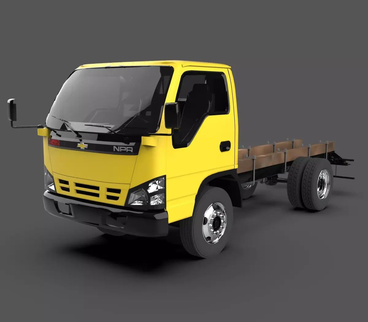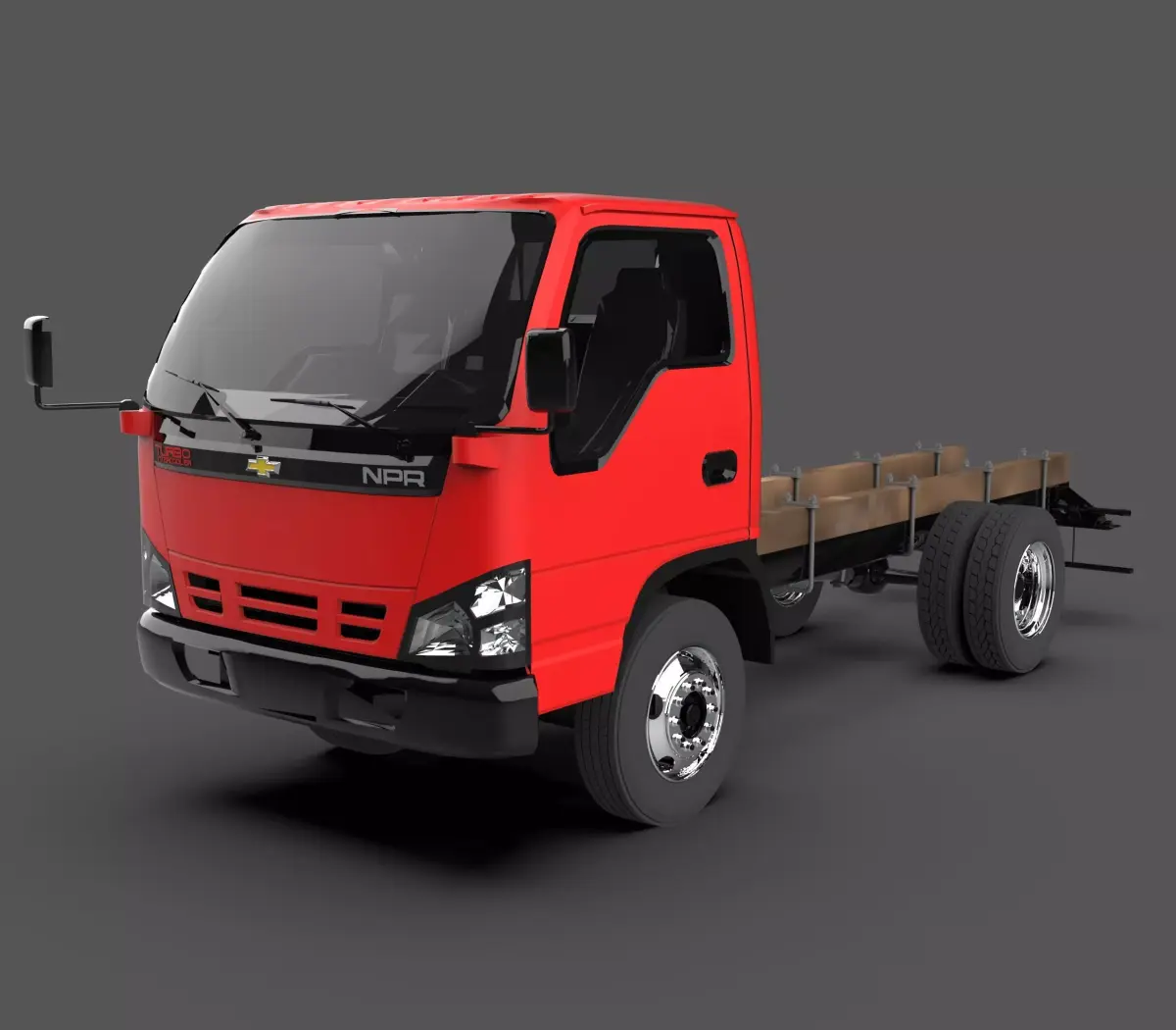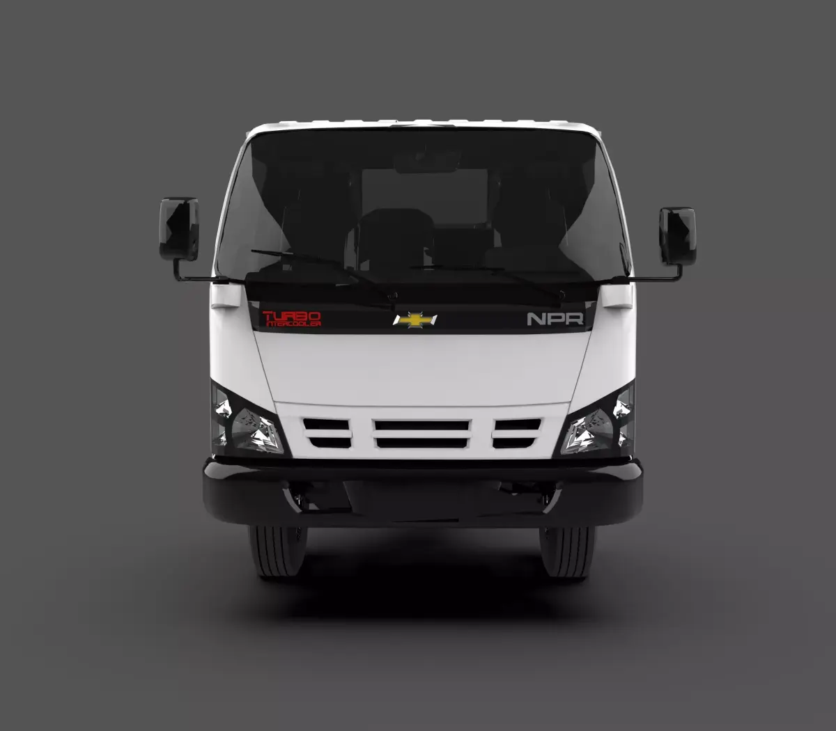 High-quality 3D model of the Chevrolet NPR Diesel, a medium-duty cargo truck widely used for commercial deliveries, logistics fleets, urban freight transport, and industrial operations. This model features detailed exterior proportions, realistic cargo box structure, front cab design, chassis elements, lighting, wheels, mirrors, and diesel truck components that reflect the characteristics of the NPR line.