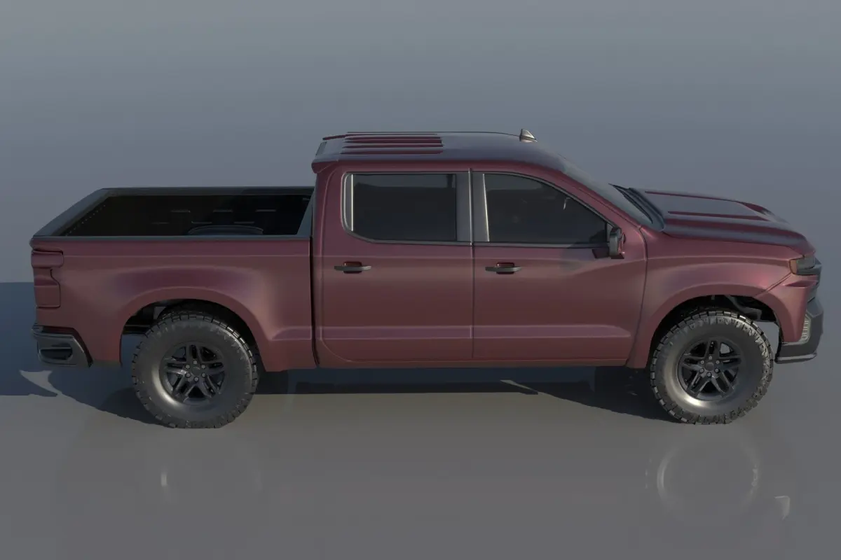The model includes •Cab •Tonneau •Cab divided into 2 parts •Tonneau divided into 2 parts •Bumpers •Interior •Chassis •Wheels •Tires •Windows and glass for headlights and taillights