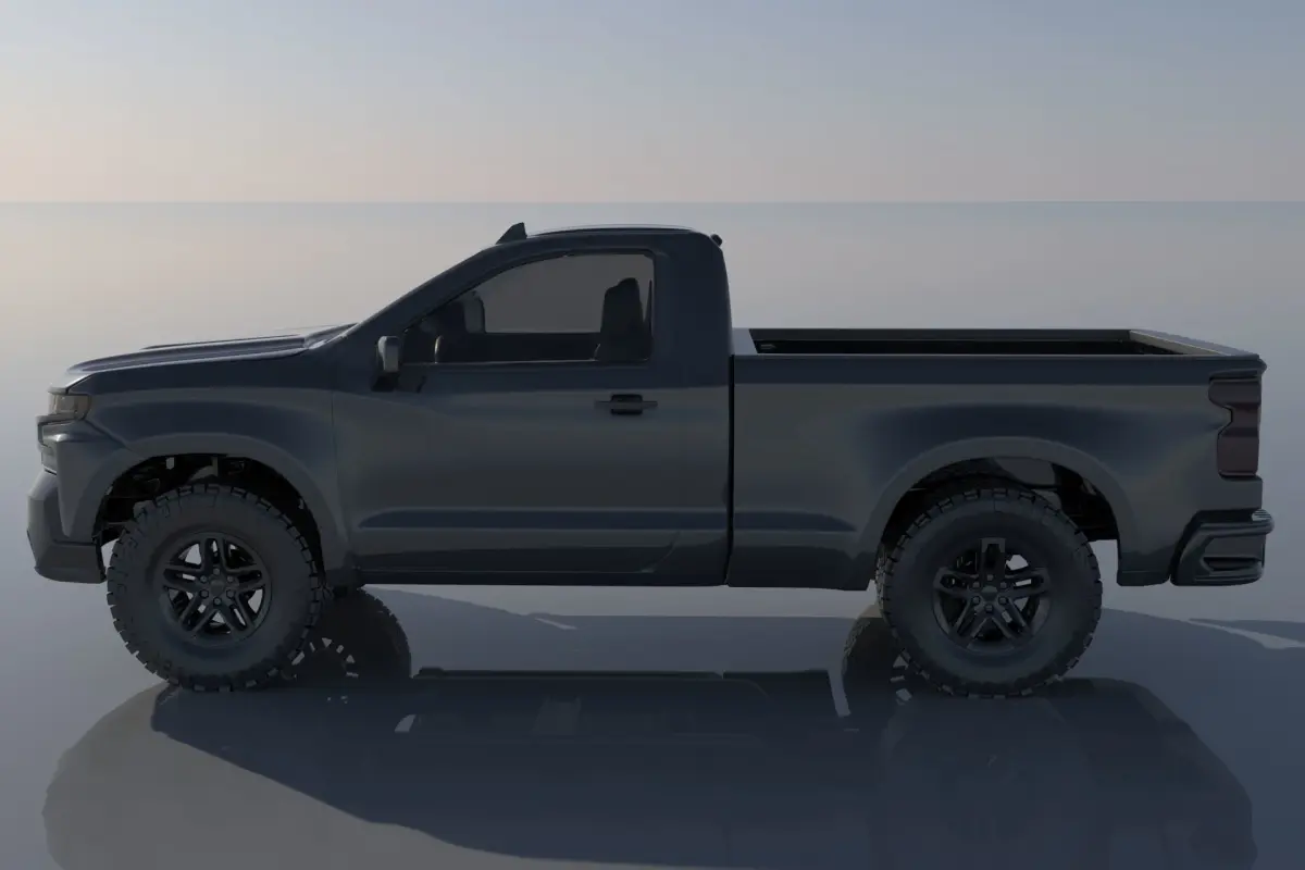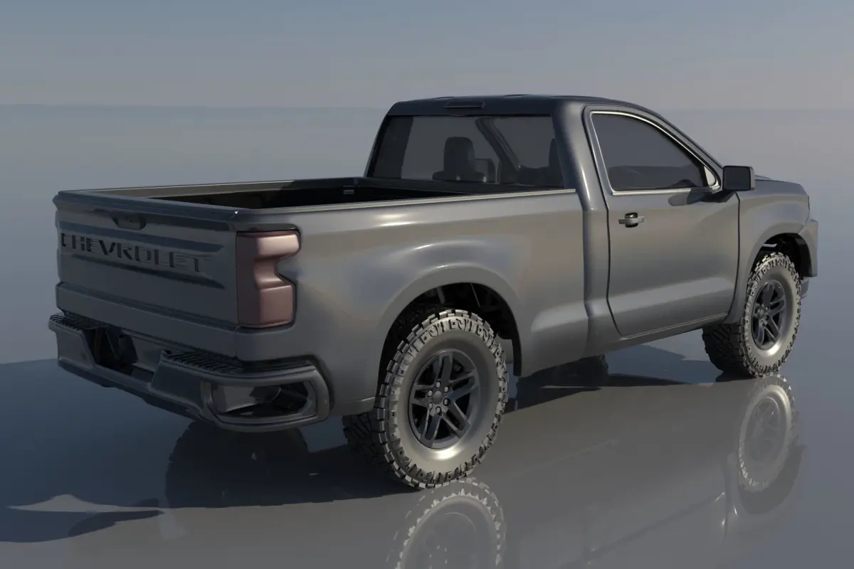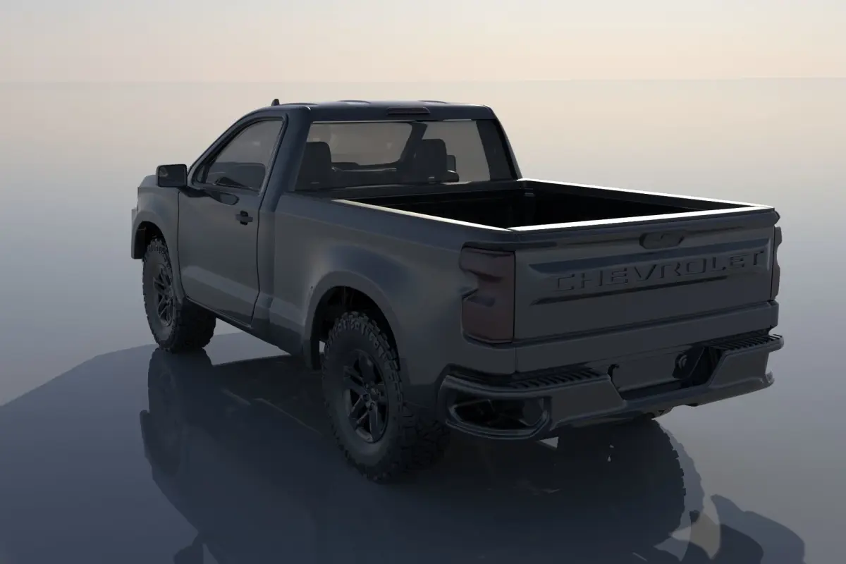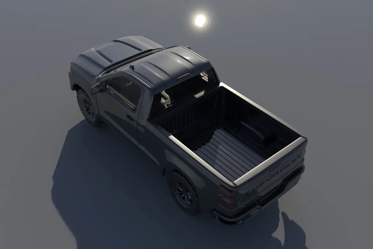 The model includes •Cab •Tonneau •Cab divided into 2 parts •Tonneau divided into 2 parts •Bumpers •Interior •Chassis •Wheels •Tires •Windows and glass for headlights and taillights
