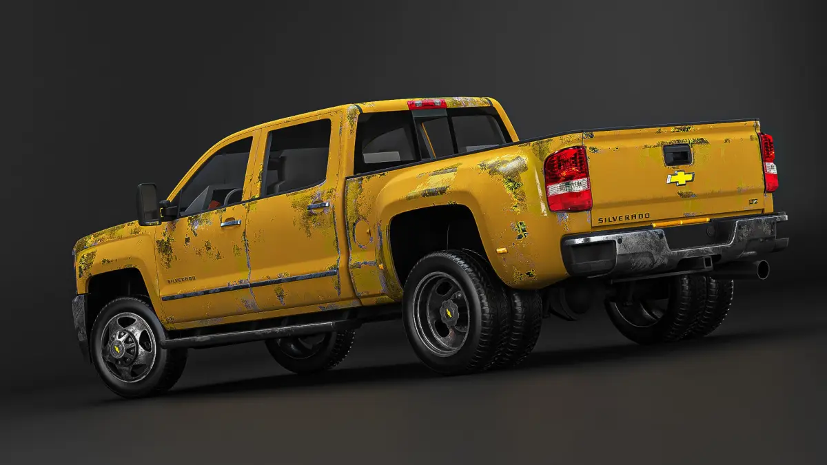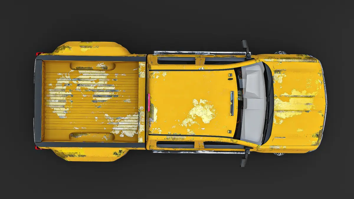 Artistically aged car, peeling old paint, rust, dust and dirt.