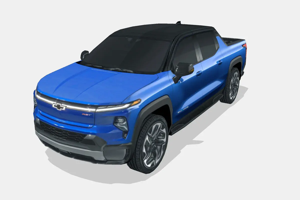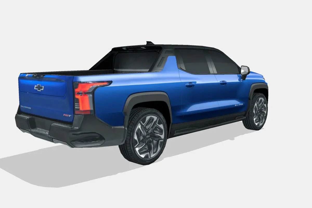 3d model of the 2024 Chevrolet Silverado EV RST, an all-electric Pickup truck.