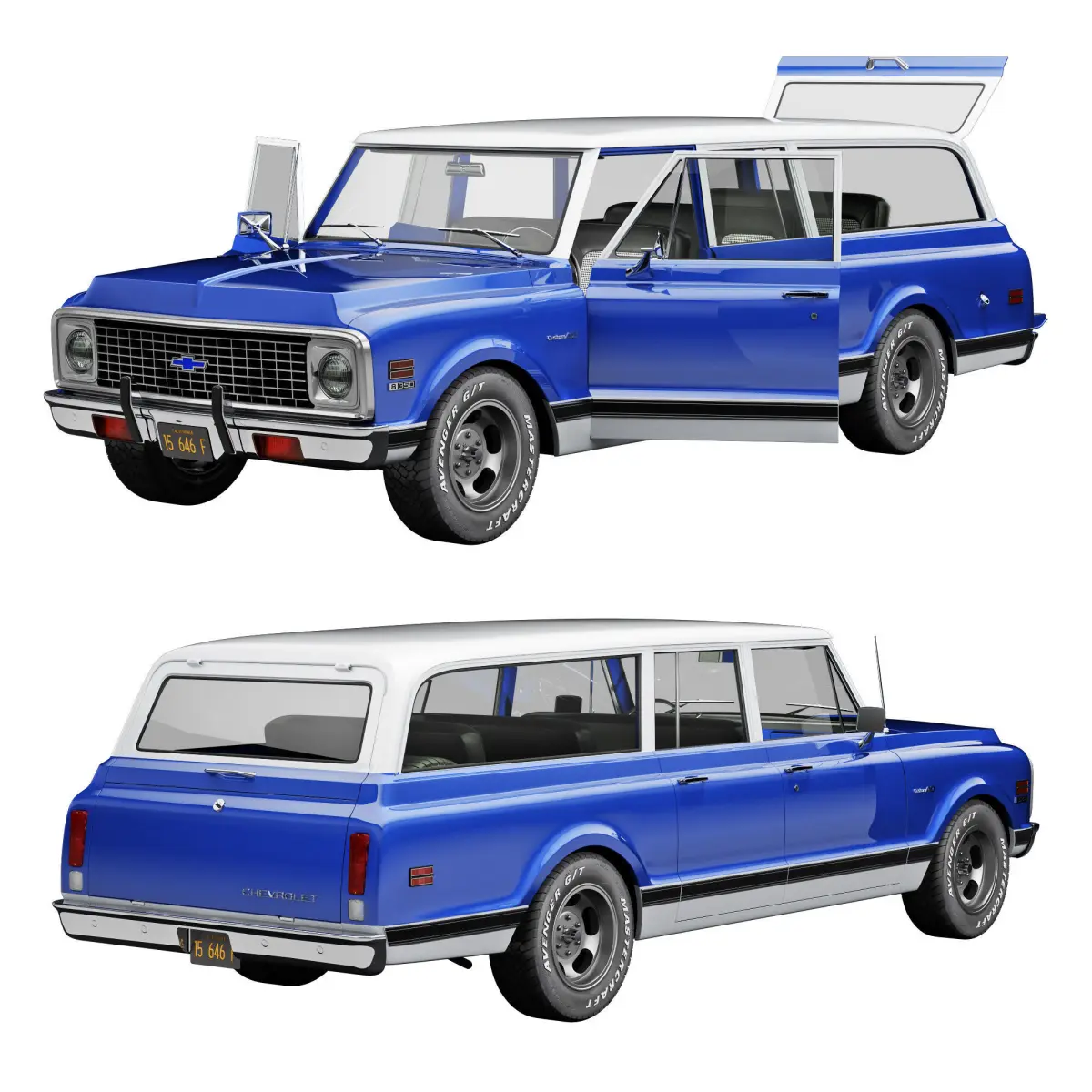 Highly detailed production ready, exterior and interior are detailed, doors and trunk lid are separate objects.Realistic model сhevrolet suburban 1972modeled in real scale (mm)