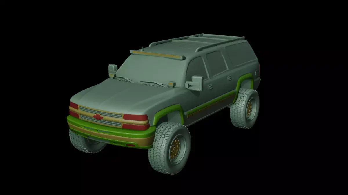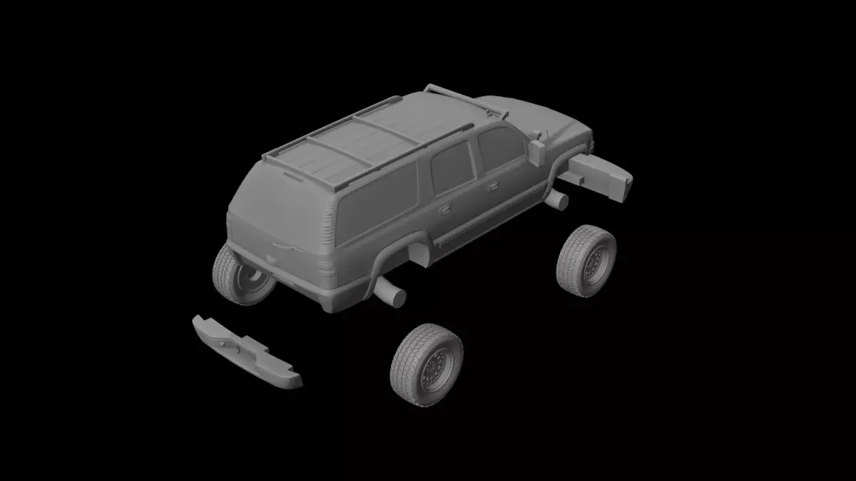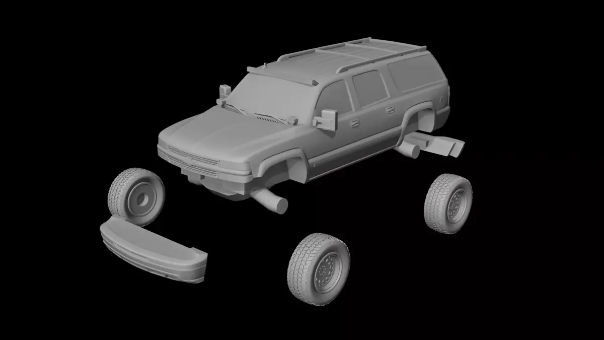 The model is fully prepared for printing and consists of multiple parts: the main body, front bumper, rear bumper, and wheels. It’s separated by colors to support multicolor printing of different elements.