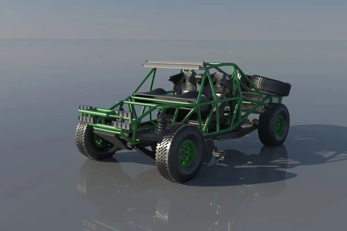 The model includes •Body •Body divided into 5 parts •Frame •Dashboard •Steering wheel •Seat •Suspension Parts •LED lamps •Wheels •Tires