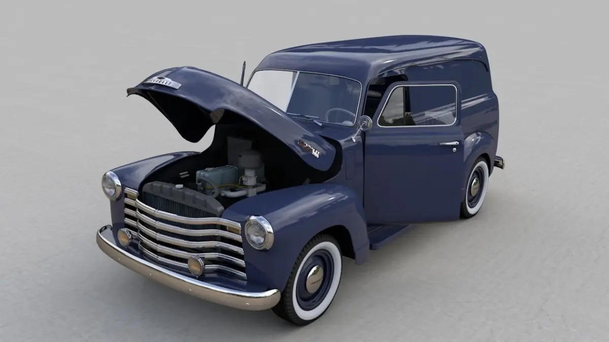 High detailed 3D model CHEVY 3100 PANEL TRUCK 1951, from inside and outside.