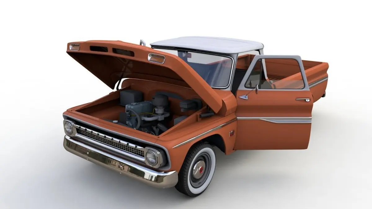 High detailed 3D model CHEVY C10 283 V8 PICKUP 1966, from inside and outside.