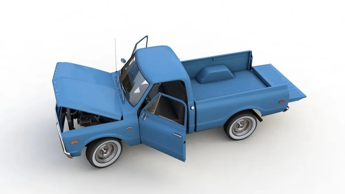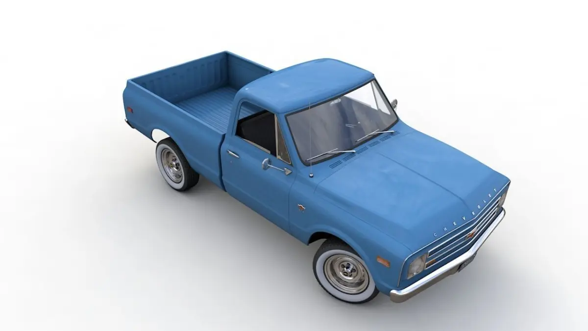 High detailed 3D model CHEVY C10 PICKUP FLEETSIDE TRUCK 1968, from inside and outside.