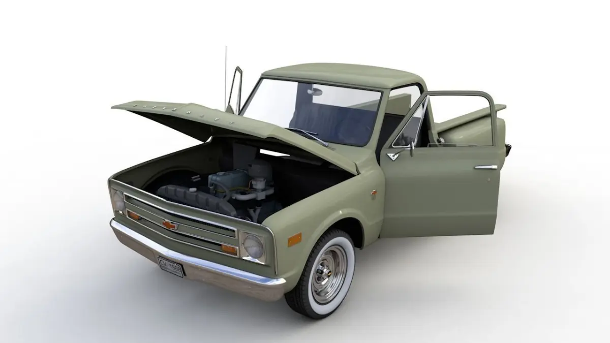 High detailed 3D model CHEVY C10 PICKUP STEPSIDE TRUCK 1968, from inside and outside.