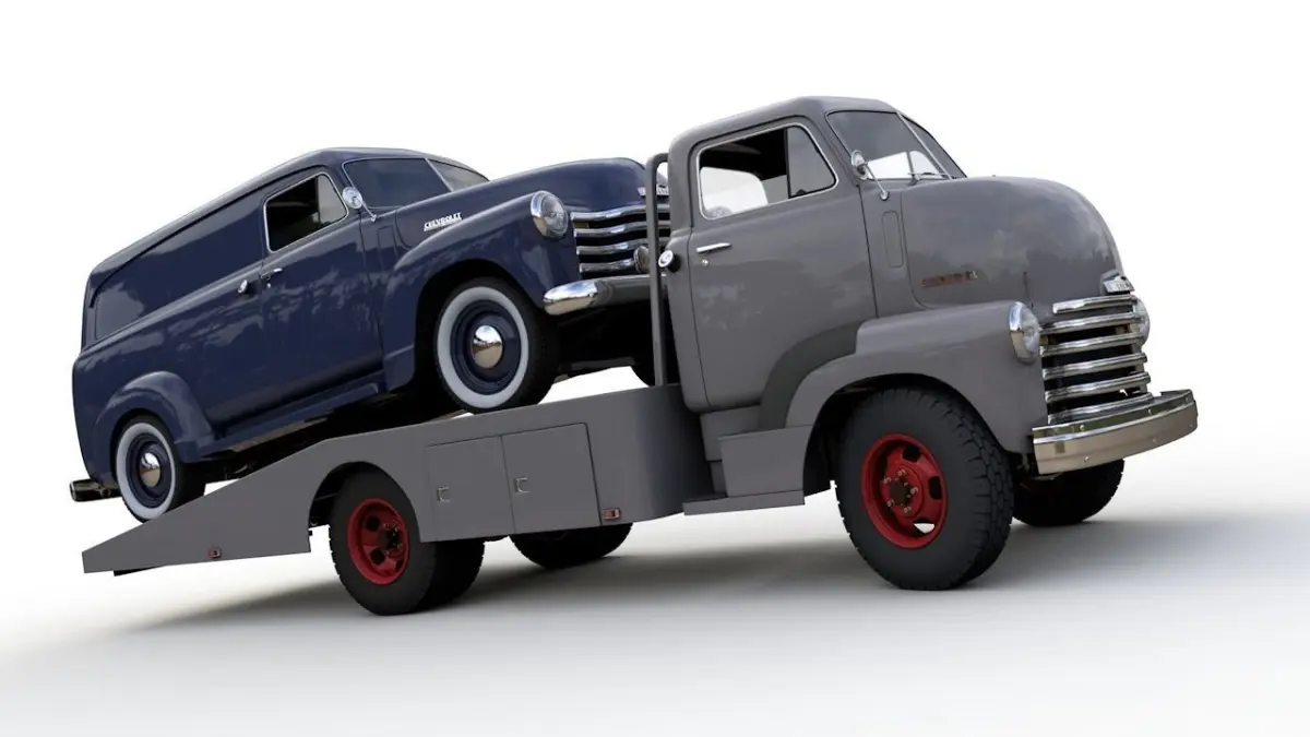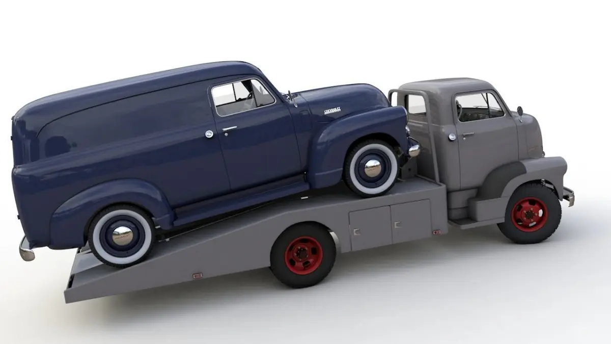 High detailed 3D model CHEVY COE TOW TRUCKER 1949 and 3100 PANEL TRUCK 1951, from inside and outside.
