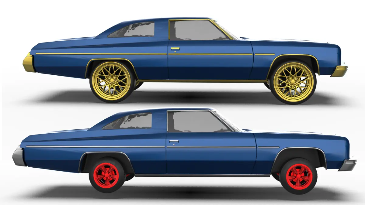3D model of Chevrolet Impala 2-Door Landau Coupe (5th generation, 1971-1976) prepared for 3D printing. Two versions of wheels are included: Donk for custom high fitment and Lowrider for classic understeer. Great for collectors, custom car enthusiasts and RC modeling. STL files are ready to print on FDM and SLA 3D printers.