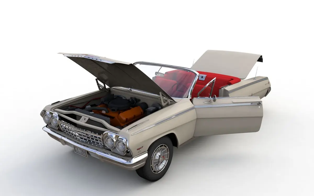 High detailed 3D model Chevy Impala SS Convertible 1962, from inside and outside.