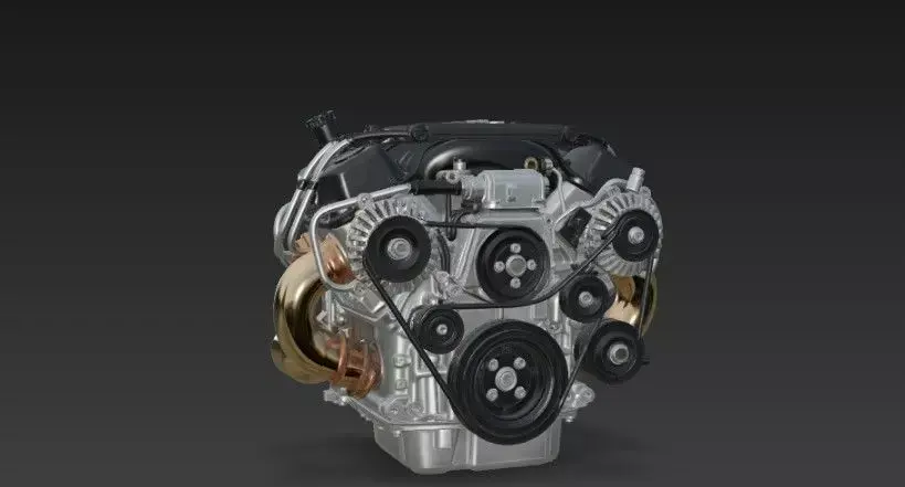 Engine Block, Heads, and Oil Pan (detailed cast aluminum textures).