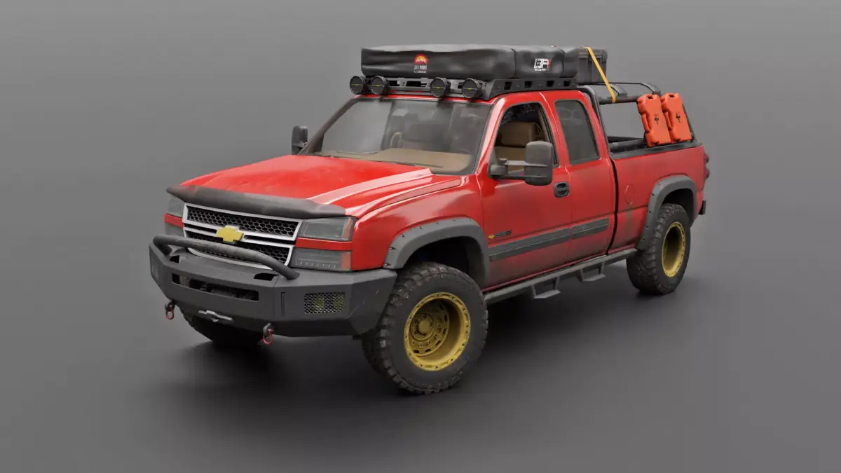 This is a 2004-ish Chevrolet Silverado 2500 Cateye in full overland spec. The model has a meticulously detailed exterior as well as interior. Ideal for use in games, scenes and any other highly realistic settings.
