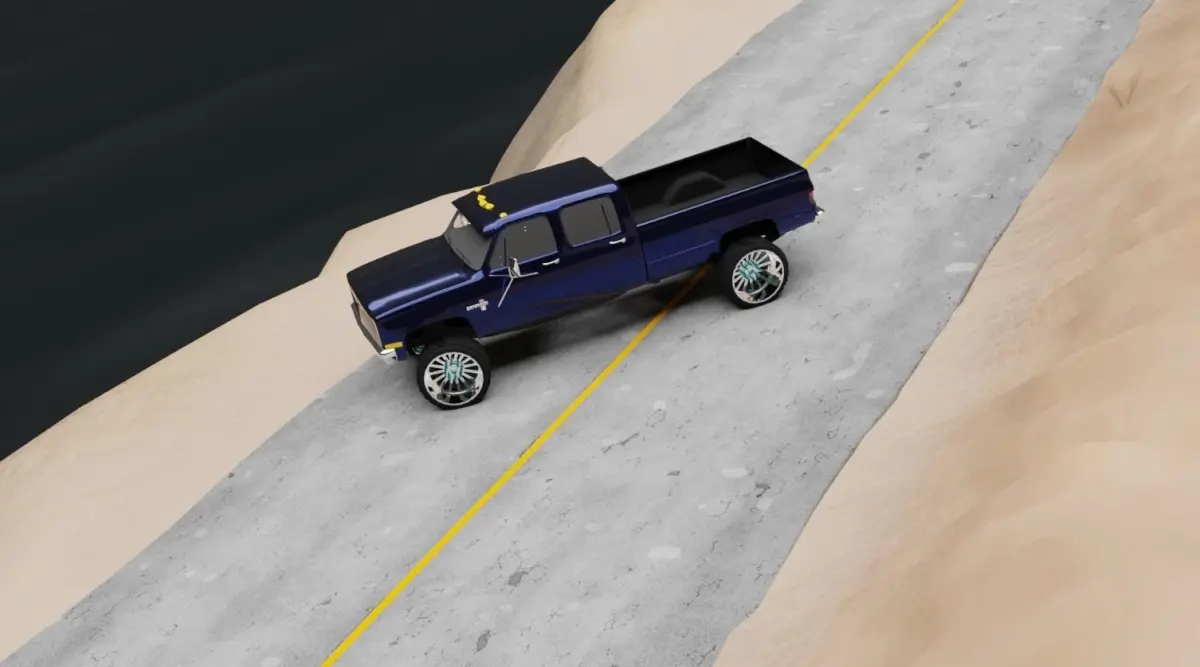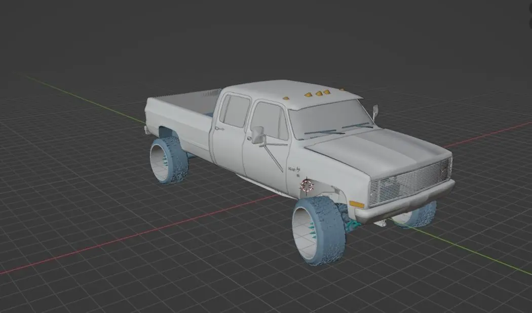 Chevy squarebody with a custom lift, wheels, grille and visor. Lowpoly interior. and Seperated well!