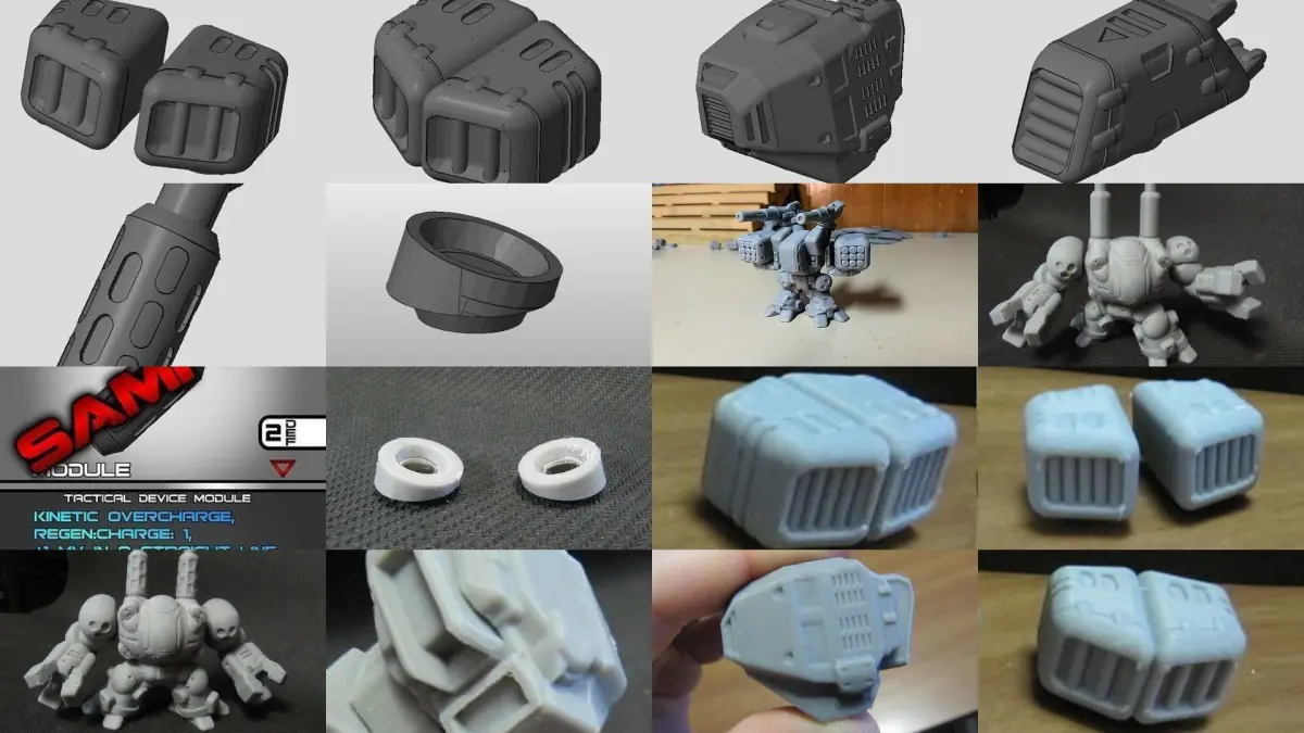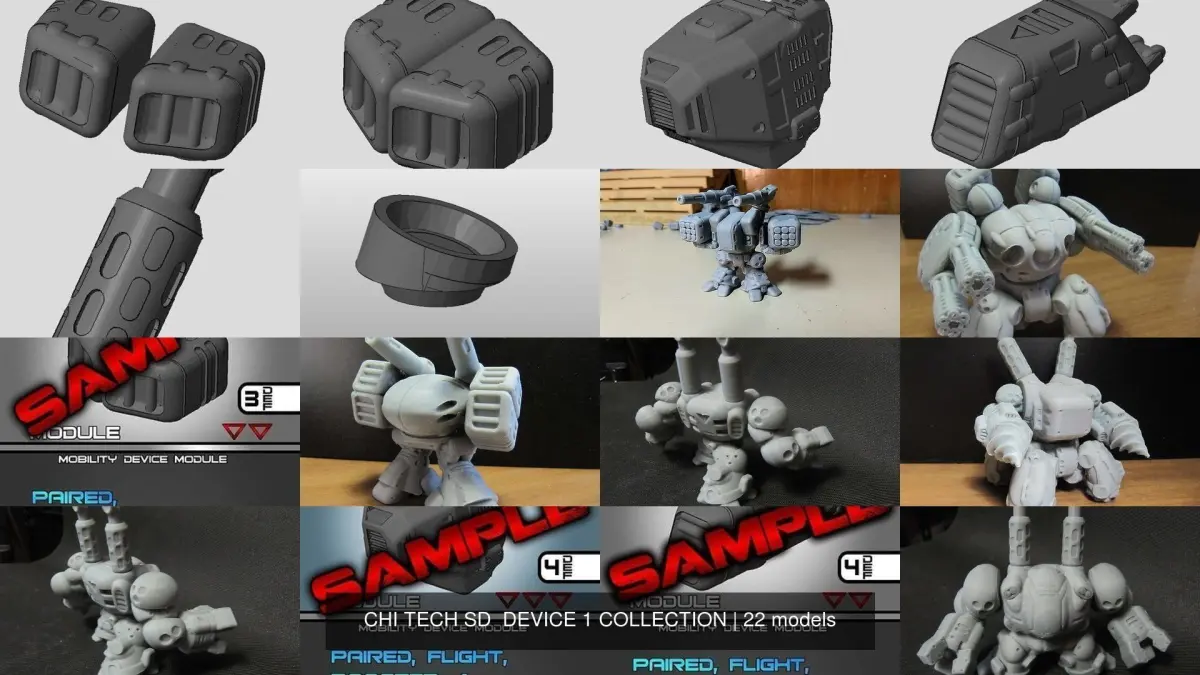 FULL SERIES 1 DEVICE COLLECTION: CHIBI-TECH SD modular Mecha. 30mm chibi (super-deform) sci-fi tabletop miniatures series come with a single-piece .STL and FDM-optimized versions for quality supportless printing. Many include free alternate variant sculpts. Also includes ready-to-print .PNG format GAME CARD(S). Designed to be 100% modular by using 6x1.5mm neodynium magnets.