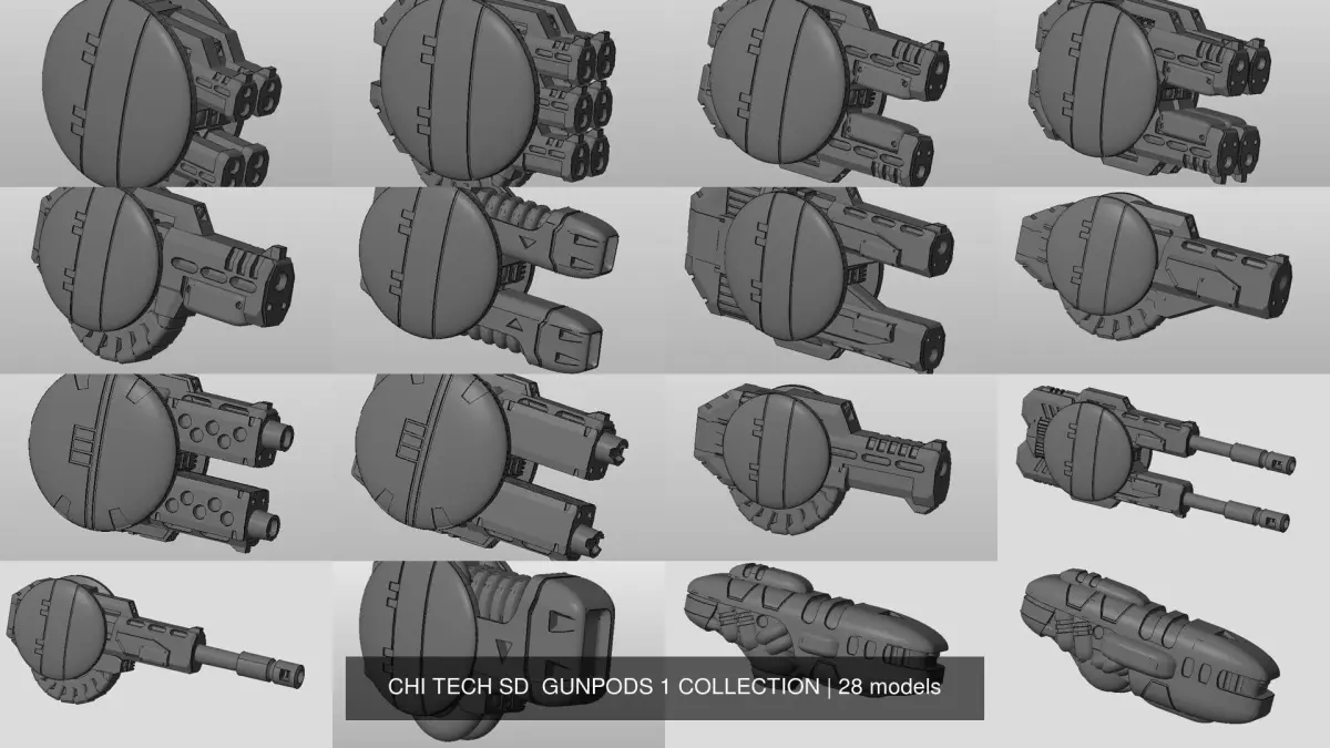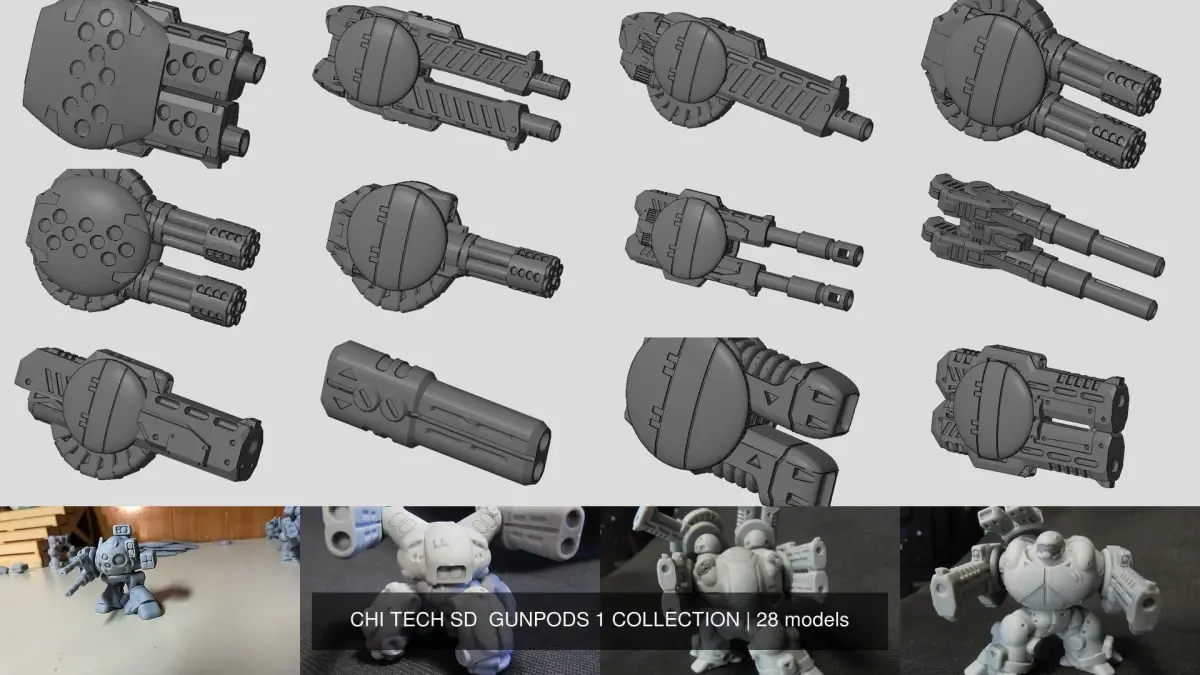 This file pack contains the FULL SERIES-1 COLLECTION of GUNPOD MODULES from the CHIBI-TECH SD lineup, plus ALTS, and ALL STAT CARDS for the included Modules.