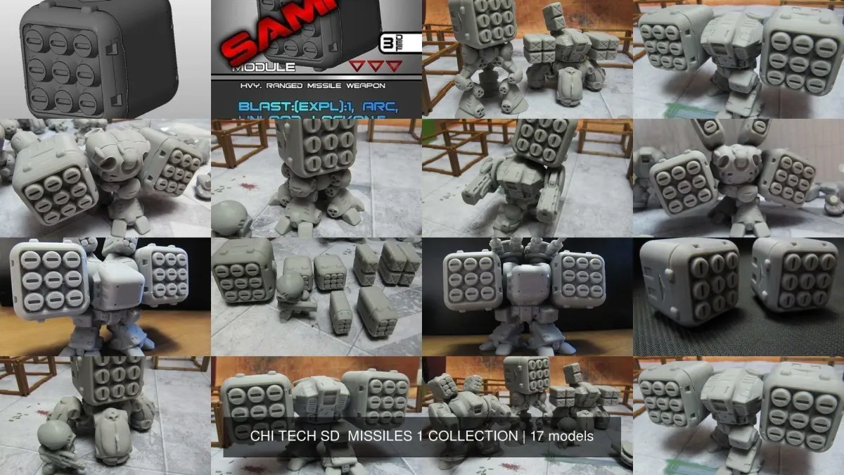 This file pack contains the FULL SERIES-1 COLLECTION of MISSILES MODULES from the CHIBI-TECH SD lineup, plus ALTS, and ALL STAT CARDS for the included Modules.