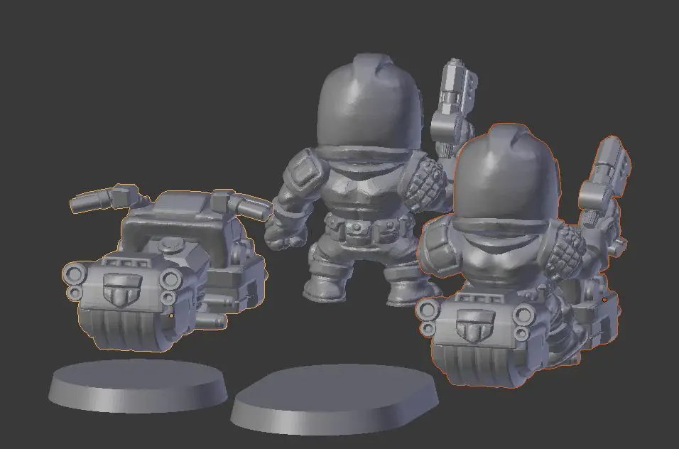 Custom chibi minis great for other 30mm sized chibi games such as starcadia quest or super dungeon exploremodels included in this setLawmanLawman on bikeBike25mm base39mm vehicle basepresupported files, set up for resin printing