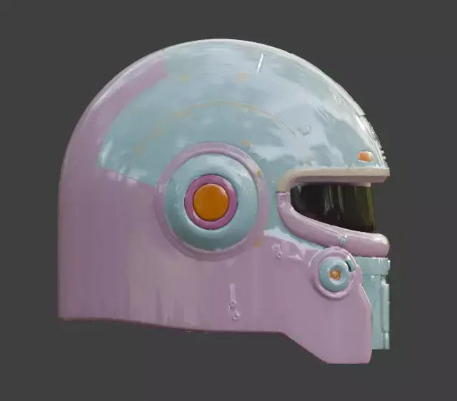 Tagshelmet, robot helmet, toy helmet, chibi style, soft sci-fi, pastel colors, cyan, pink, 3d model, game asset, futuristic, armor