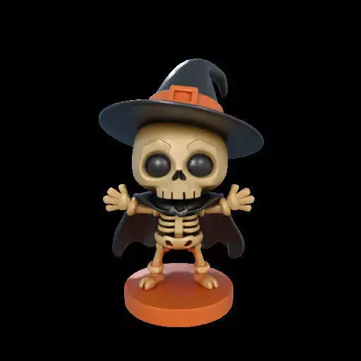 This 3D-printed chibi skeleton depicts a tiny, cute skeleton of a man with a Halloween twist. With a rounded skull, simplified bones, and small cloak and hat accessories, it’s perfect as a fun, spooky collectible or decoration. Optimized for stability and printability.