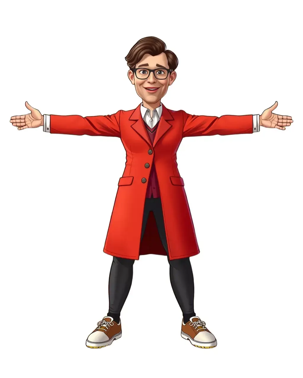 This versatile 3D model of a character in a chic red coat is perfect for various creative applications. With its vibrant color and detailed design, it stands out in any scene. Ideal for animations, video games, or architectural visualizations.