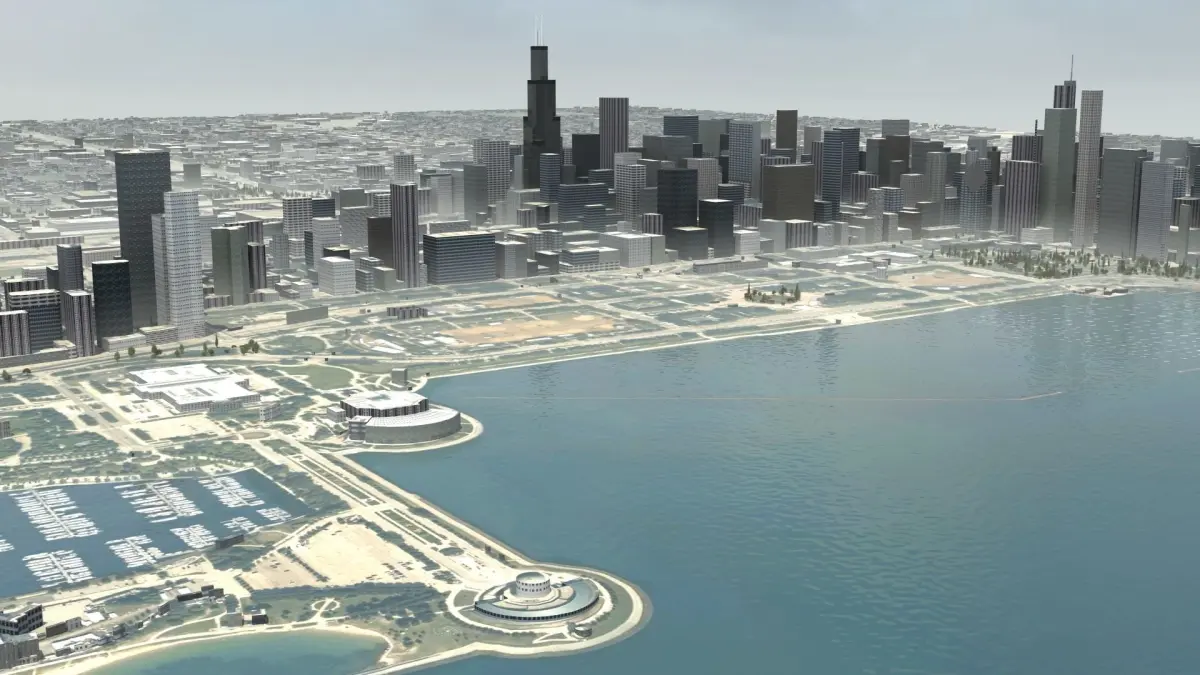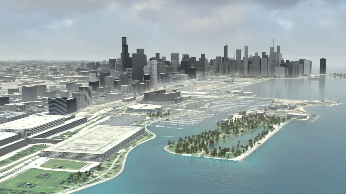 Chicago City, Illinois USA. Max version includes lighting and animated camera path. Thousands of unique buildings.