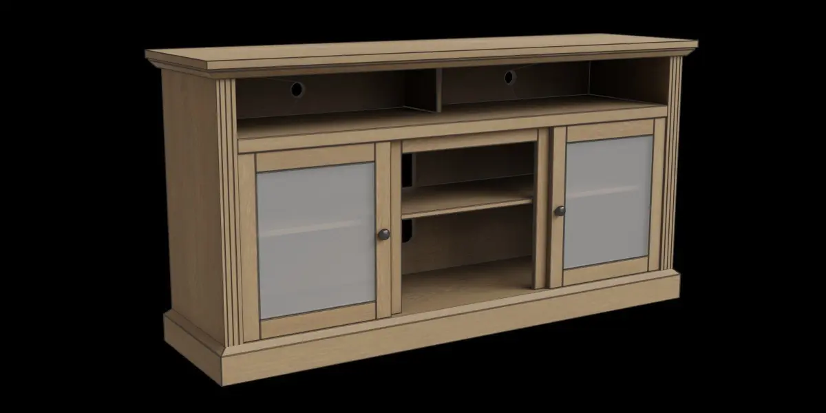 This model is a TV stand made from light woodIt's suitable for a farmhouse style living roomThe file consists of blend file format with 4k resolution baked textures:_ Base color_ Metalness_ Roughness_ Normal