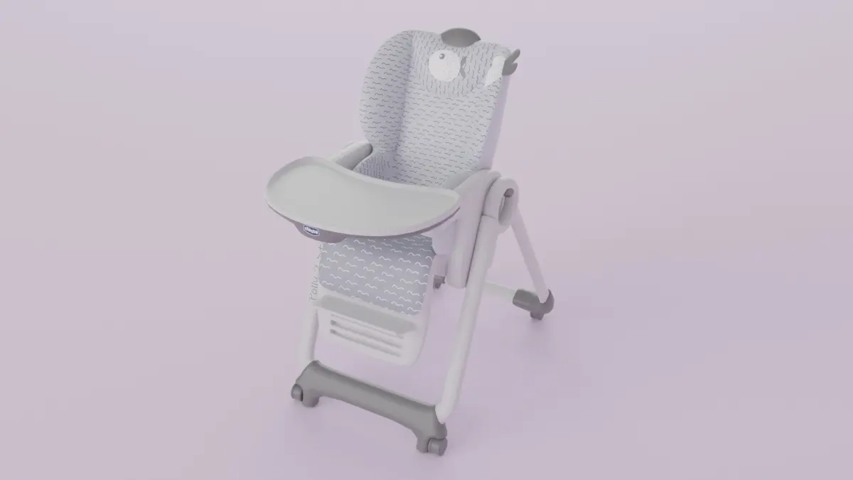 Baby feeding chair with cute fish pattern. Based on Chicco Polly high chair design. Low poly and game ready / VR ready 3D model with low polygon count. Specifically created for gaming projects and VR projects in anygame engine. Natively modeled in blender, native file included for modify options.