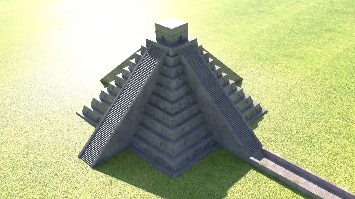 Very high detailed 3d model of the Chichen Itza pyramidDetailed enough for your close-up rendersDifferent formats are avaiableIncluded are textures, standard materials in Max file and V-Ray and standard materials in the archives..