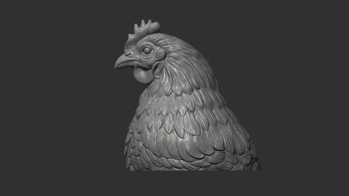 500K STL, OBJ triangulated mesh, Chicken bust head is cut off from the bottom