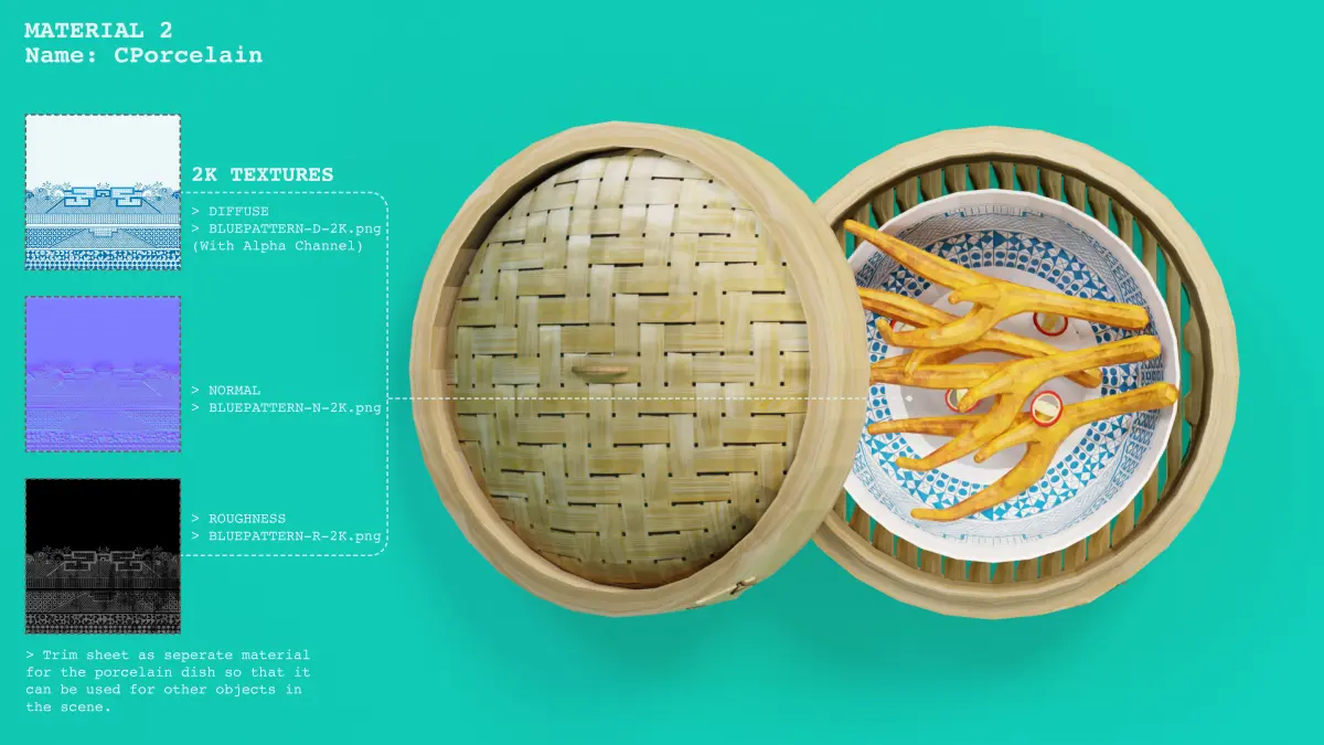 Name: CPorcelain, trim sheet applies to the bowl in the base mesh.Includes 4No PNG textures at 2048px x 2048px