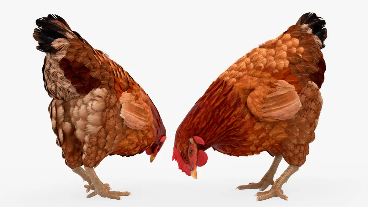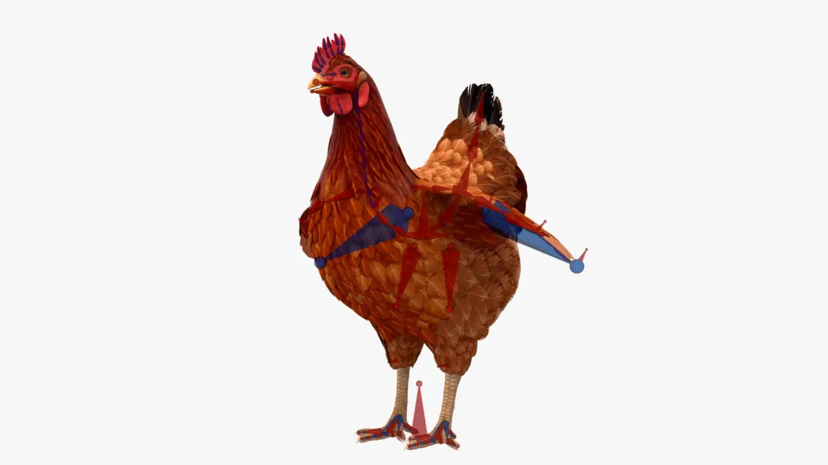 Chicken Rigged For Blender is a three-dimensional model of chicken farming bird (adult poultry bird), that is a domesticated bird species.
