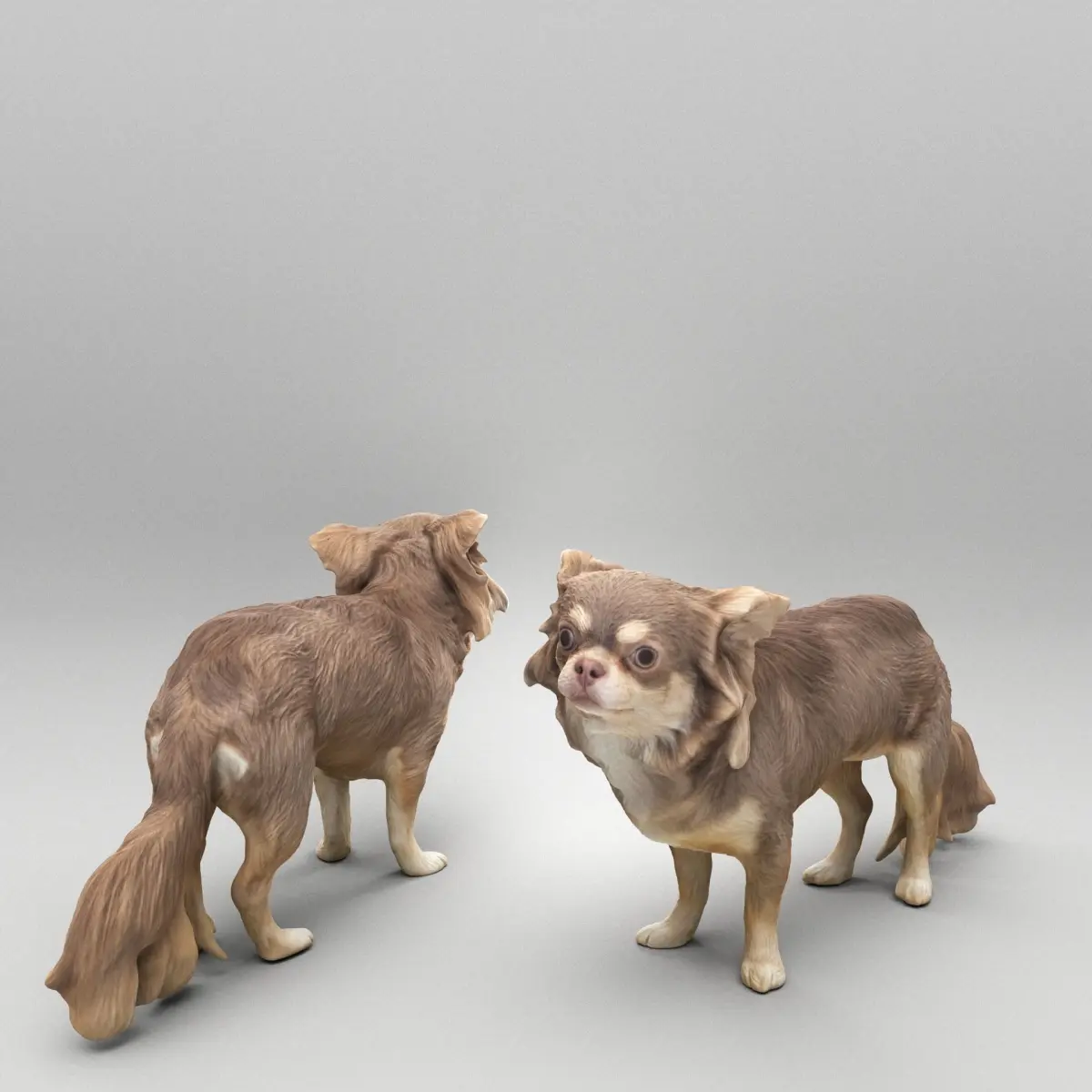 This is a true sized and highly detailed model of a young charming Сhihuahua dog. It will add life and coziness to any architectural visualisation of houses, playgrounds, parques, urban landscapes, etc. This model is suitable for game engine integration, VR/AR content, etc.