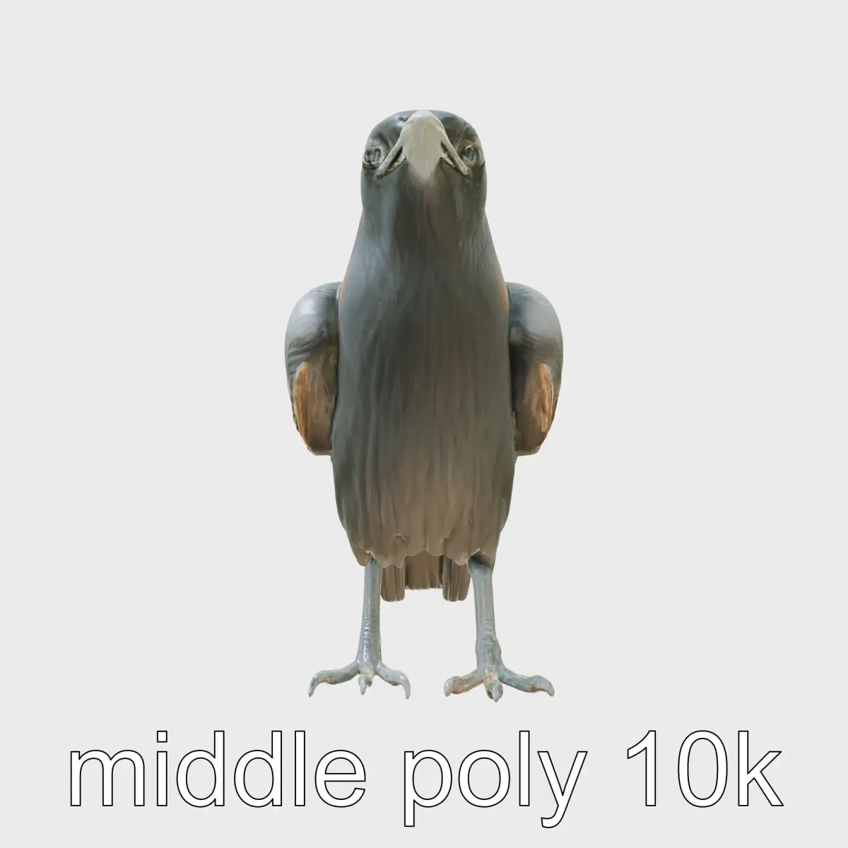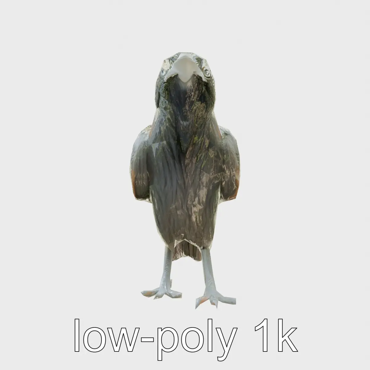 Chihuahuan Raven 3D model features three levels of detail: low-poly, middle-poly, and high-poly, ideal for production rendering, gaming engines, and interactive presentations. Adapted for desert environments, it's suitable for ecological simulations and educational purposes. PBR textures include Diffuse, NormalMap, and reflection/roughness/metallic, universally compatible with rendering engines like 3ds Max, Maya, and game engines like Unity and Unreal. Unwrapped without overlapping UVs and includes 4096x4096 textures. Like and comment if you enjoy this model.