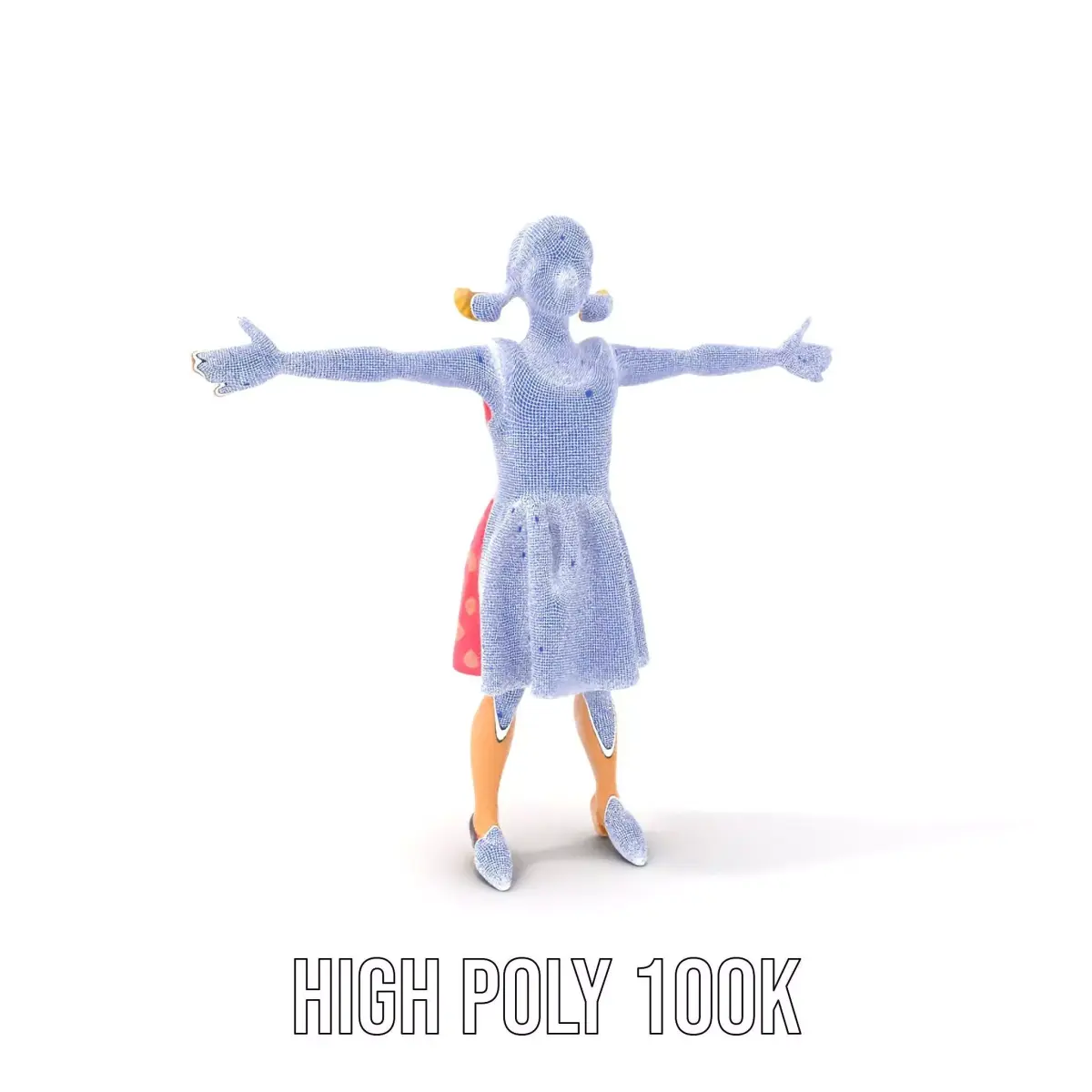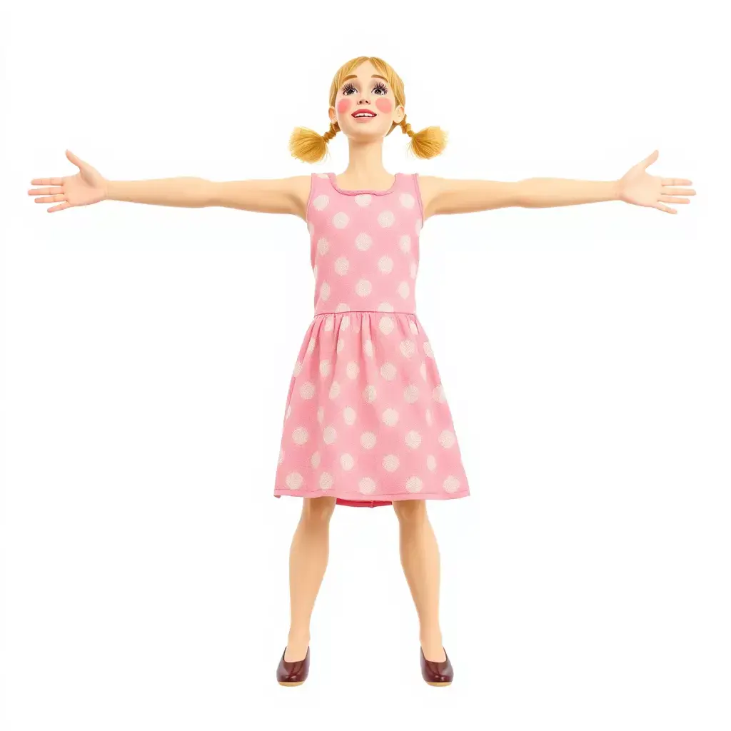 This charming child character model features a delightful pink polka dot dress, making it perfect for various applications. Each model has 3 levels of detail: low-poly(1000 triangles for mobile), middle-poly(10,000 triangles for environment), and high-poly(100,000 triangles), providing flexibility for production rendering and game engines. Ideal for animated films, children’s games, virtual environments, and educational apps. The model's textures are PBR, Diffuse, NormalMap, and reflection/roughness/metallic, suitable for any modern rendering engine. All models accurately unwrapped with no overlapping UV. The first image is the reference used for creating the 3D model. It is important to carefully evaluate the quality of the model by examining the preview images that display the topology and polygonal mesh. These previews (WIRE and WEB 3D Preview) clearly demonstrate how accurately the model matches the original reference and how well the geometry has been executed. All textures are 4096*4096 in size. Please like and leave a comment if you enjoyed this model.