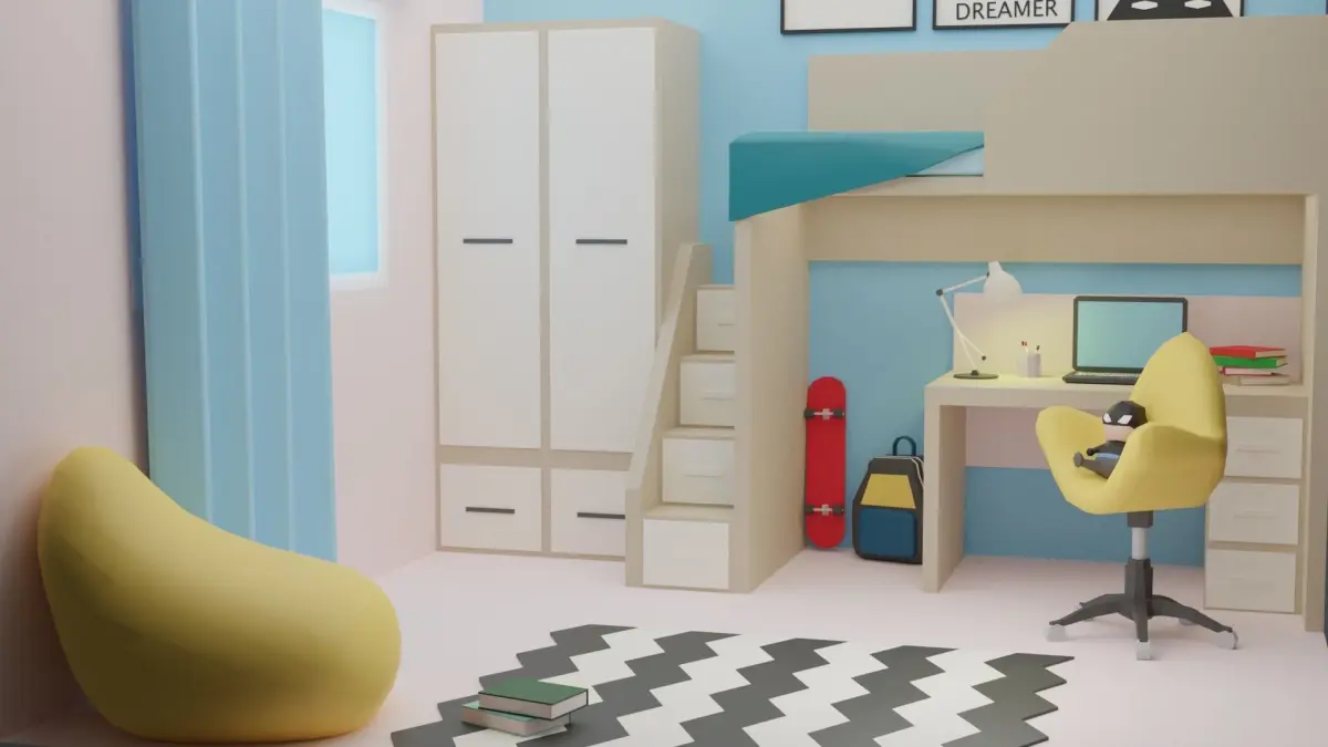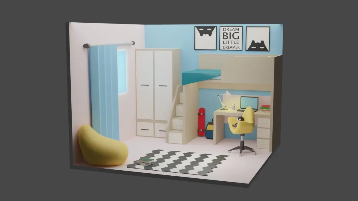 This set includes 21 unique props: table / bed / pillows / curtains / pictures / toys / rug / pouf and accessories and much more!