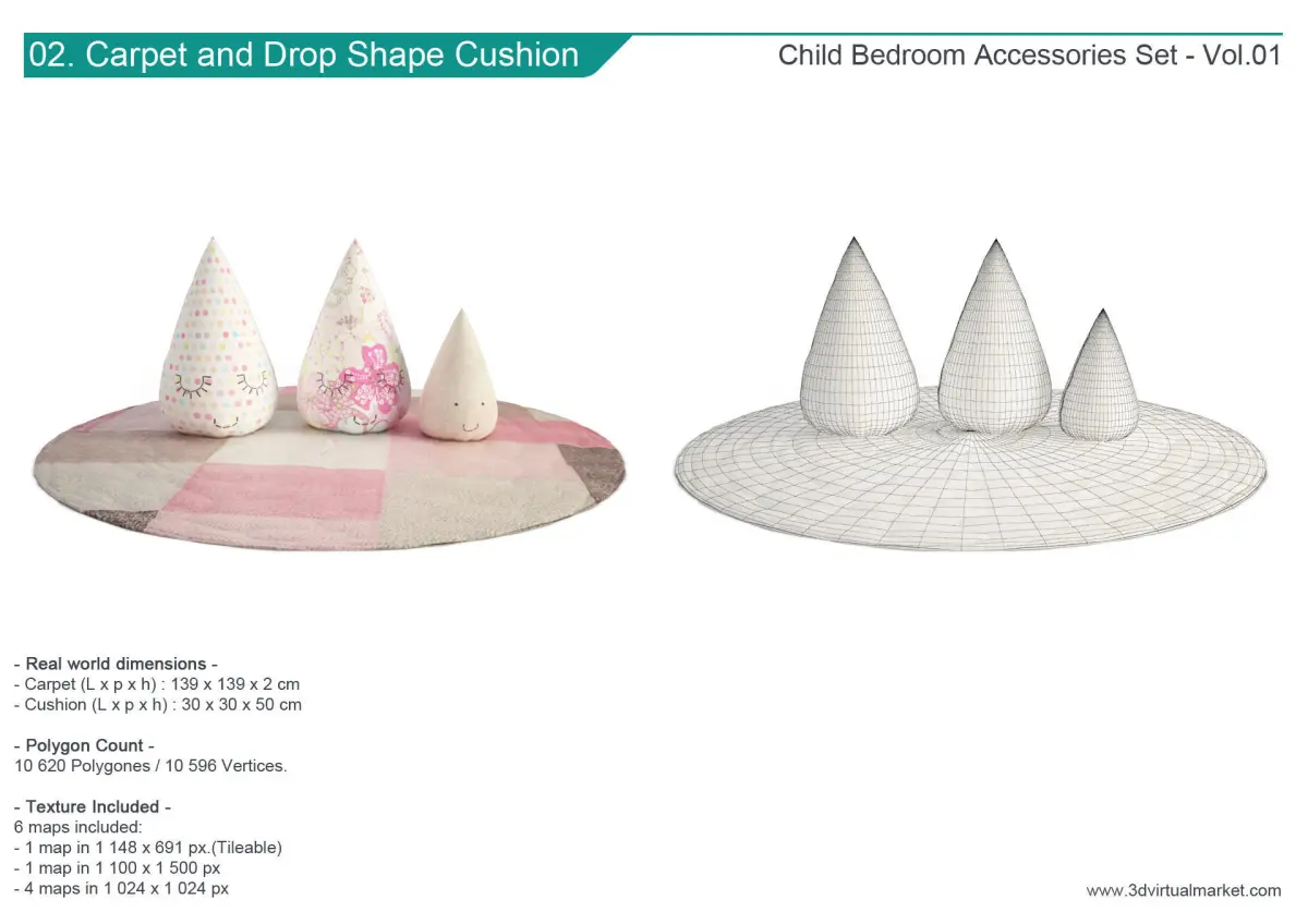 - Used textures resolution are between 600 x 382 px and 2048 x 2048 px.
