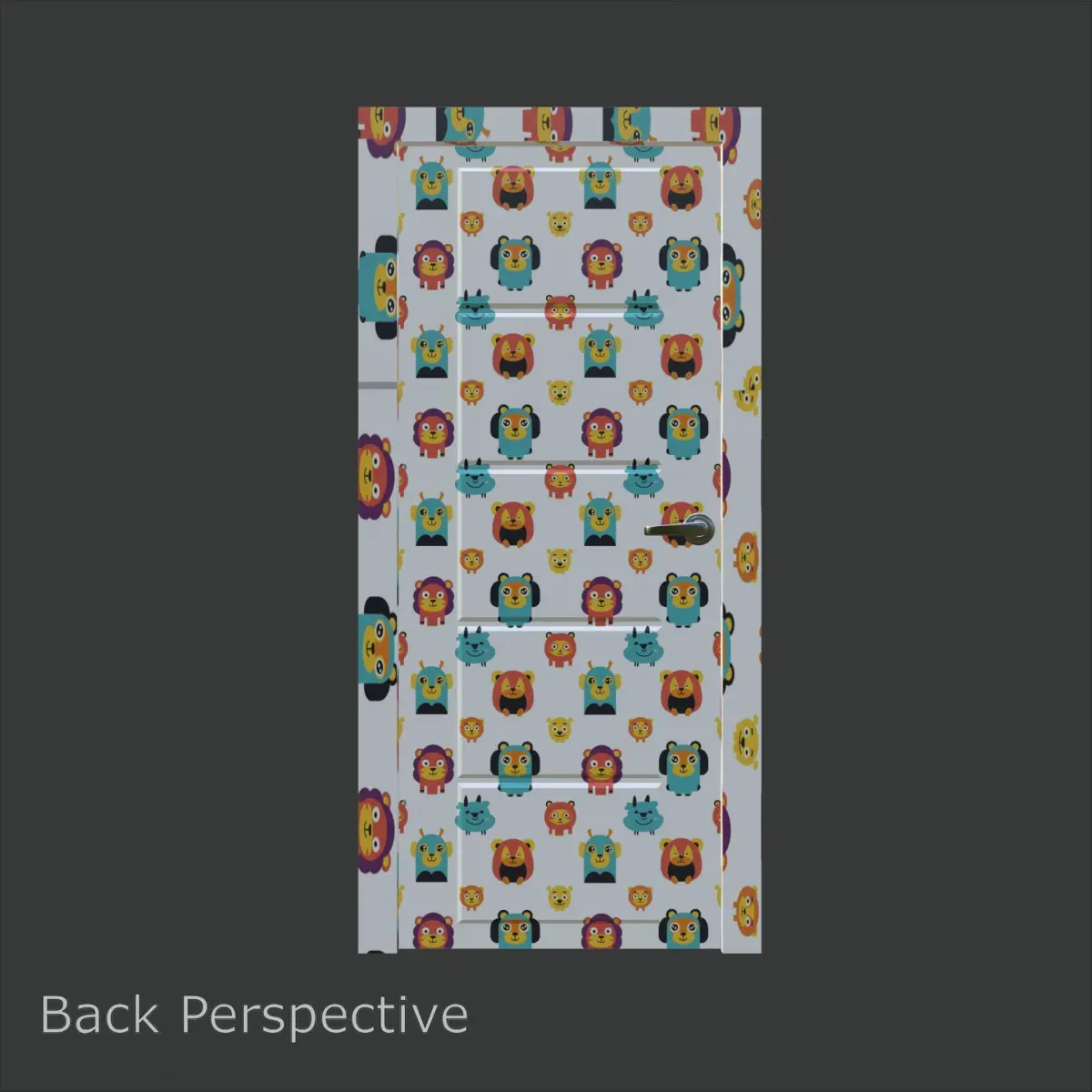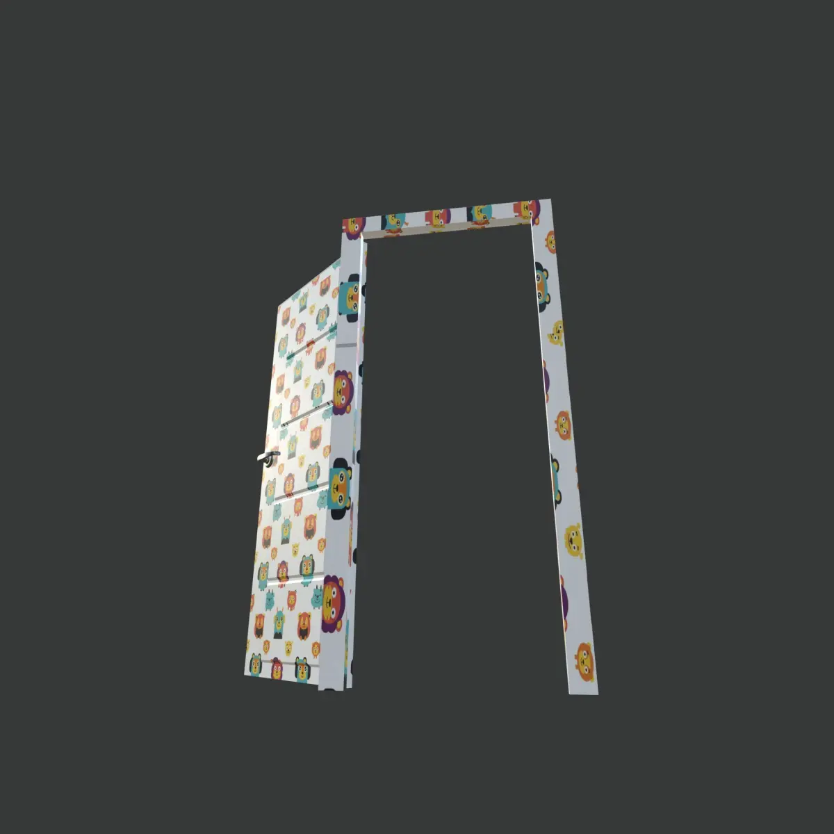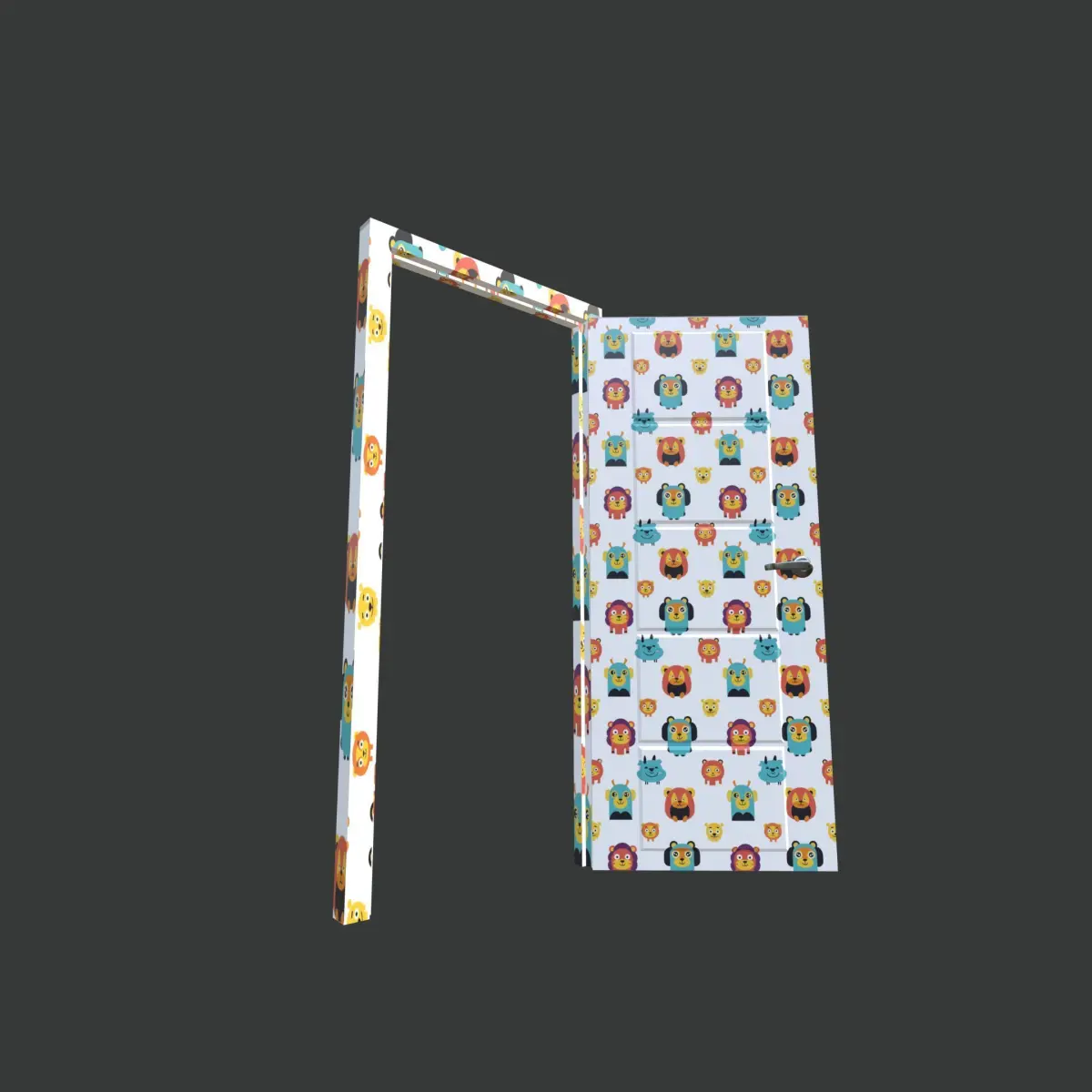 This 3D model features a playful children's interior door covered in colorful cartoon animal patterns, perfect for a kid's bedroom or playroom design. Created in Blender with clean geometry, it includes 2K high-quality PBR textures. Ideal for use in animation, interior visualization, or educational-themed environments.