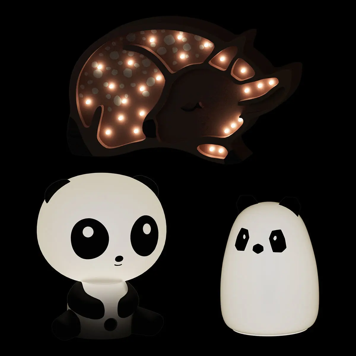 Panda Lights:https://monenseignelumineuse.fr/products/veilleuse-animaux-chat-lapin-ours-panda?variant=35229794205852https://www.kids-world.com/en/liewood-night-lamp-winston-16-cm-panda-p-133562.html