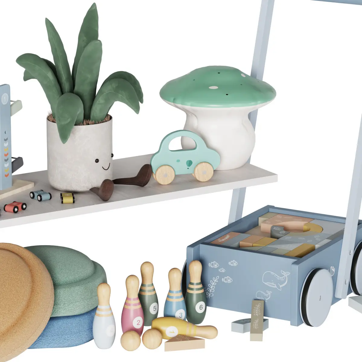 toys, decor, kid, room, plant, shelf, shelves, nursery, lamp, nightlight, walker, car, rampracer, ramp, racer, kidsroom, kids, wood, train, tower, stapelstein, stacking, mushroom, boat, clock, blocks, bowling, duck, push, ball, blue, boy, baby, fabric, ceramic, wood, childroom