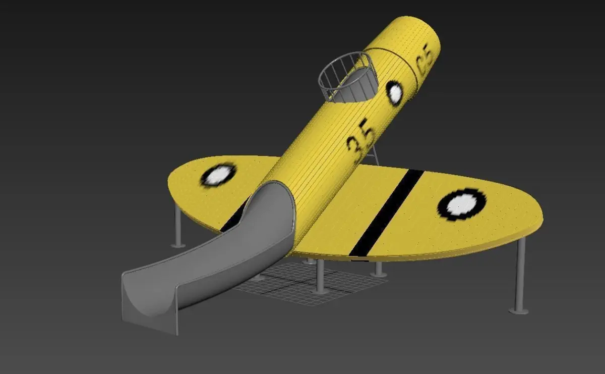 Airplane children slide Playground 3D models available for download as max. The model has a fully materials applied and fully close up ready.It's a outdoor playground for children 3-15 years old.Can be used for park,school,kindergarten,community or as landscape.