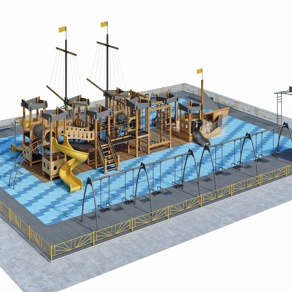 This Children playground Pirate ship is a high quality, photo real model that will enhance detail and realism to any of your rendering projects. The model has a fully materials applied and fully close up ready. This model was originally modeled in 3ds Max 2018 and rendered with Corona. Fidelity is optimal up to a 2k render.