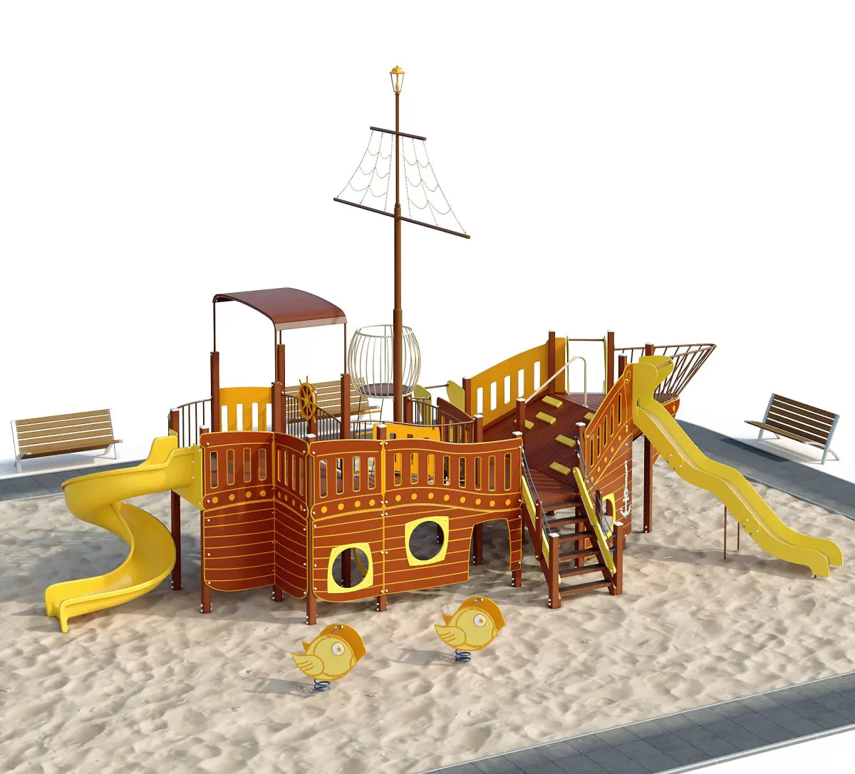 This Сhildren playground sea schooner is a high quality, photo real model that will enhance detail and realism to any of your rendering projects. The model has a fully materials applied and fully close up ready.