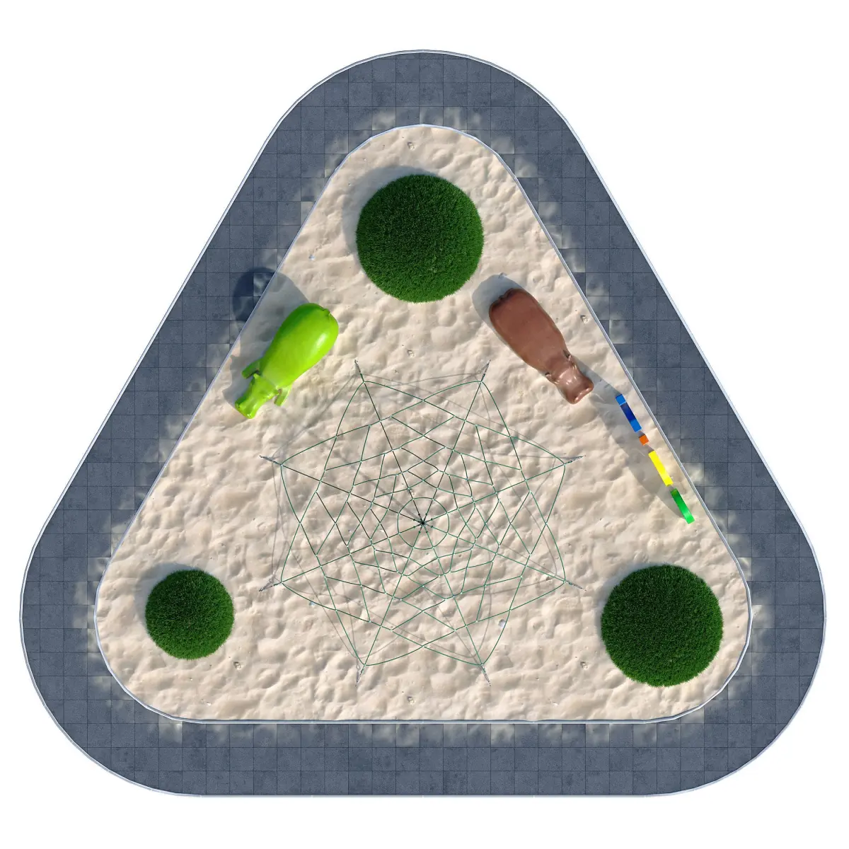 The artificial grass hills are realized with the corona scatter in the corona version and with the Vray fur in the vray.