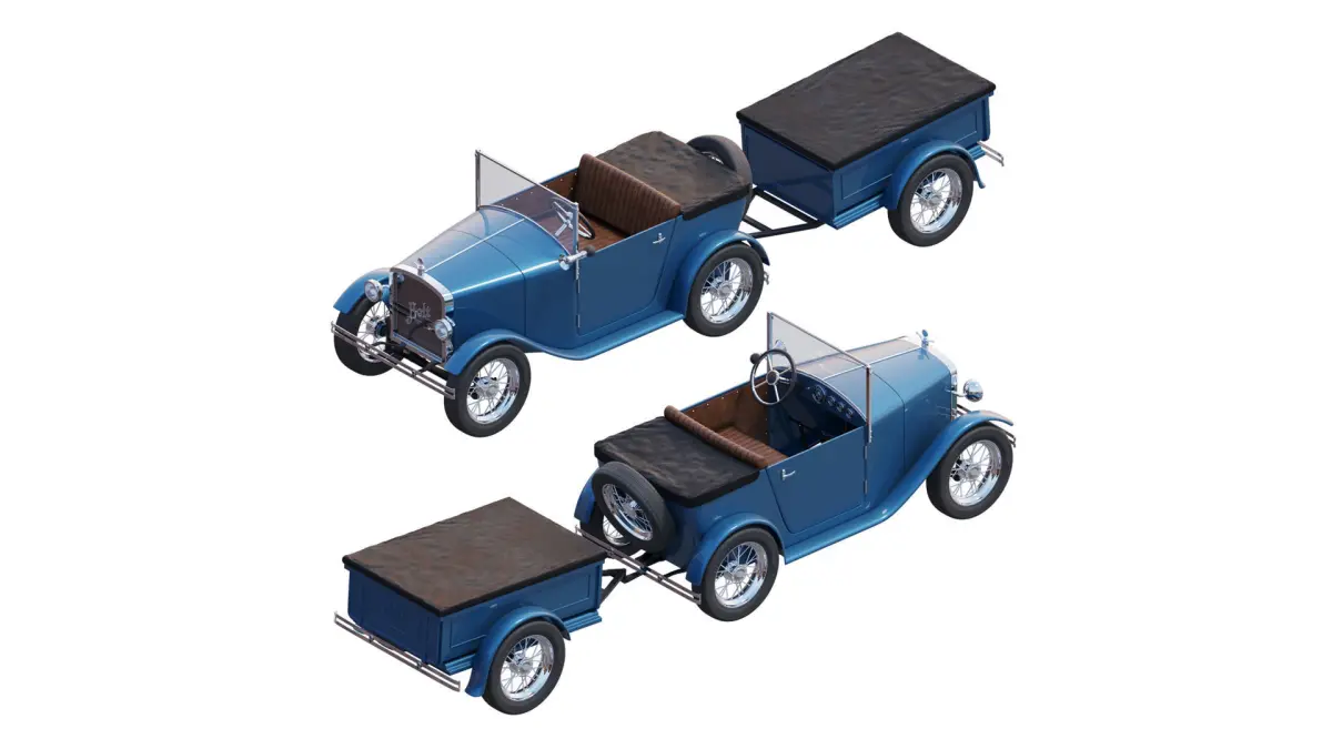 Children's pedal car with a trailerMachine 1600x700x760mmTrailer 1130x700x530mm